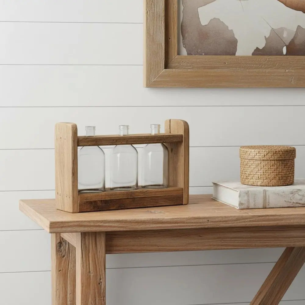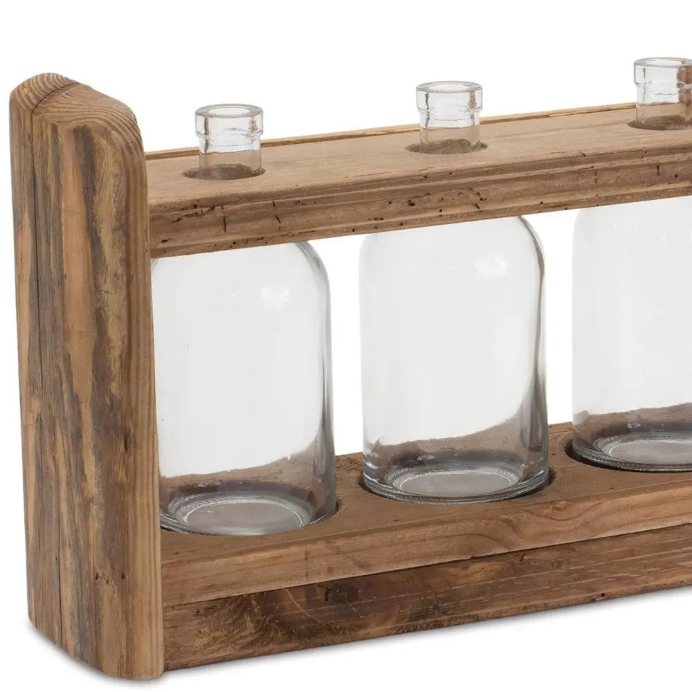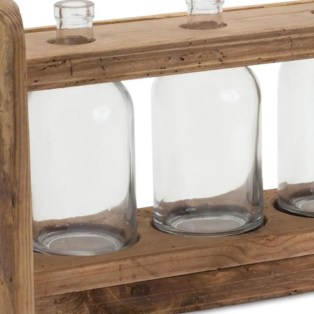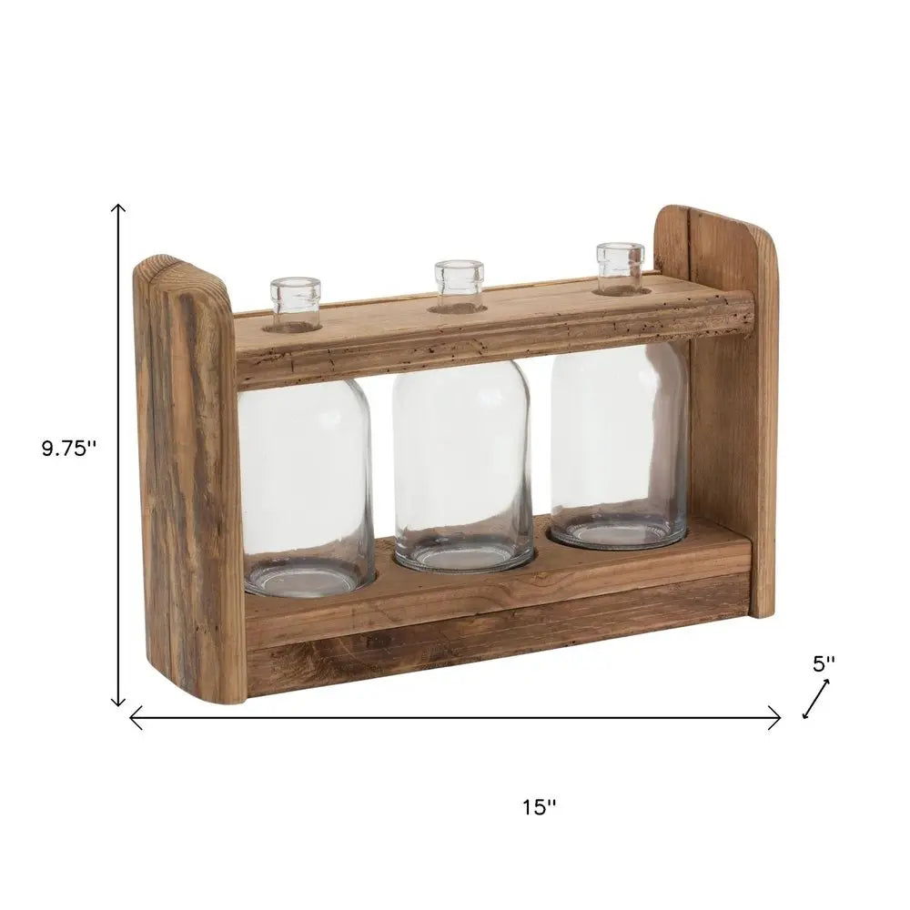 Jarrón de mesa redondo de madera marrón de 10"