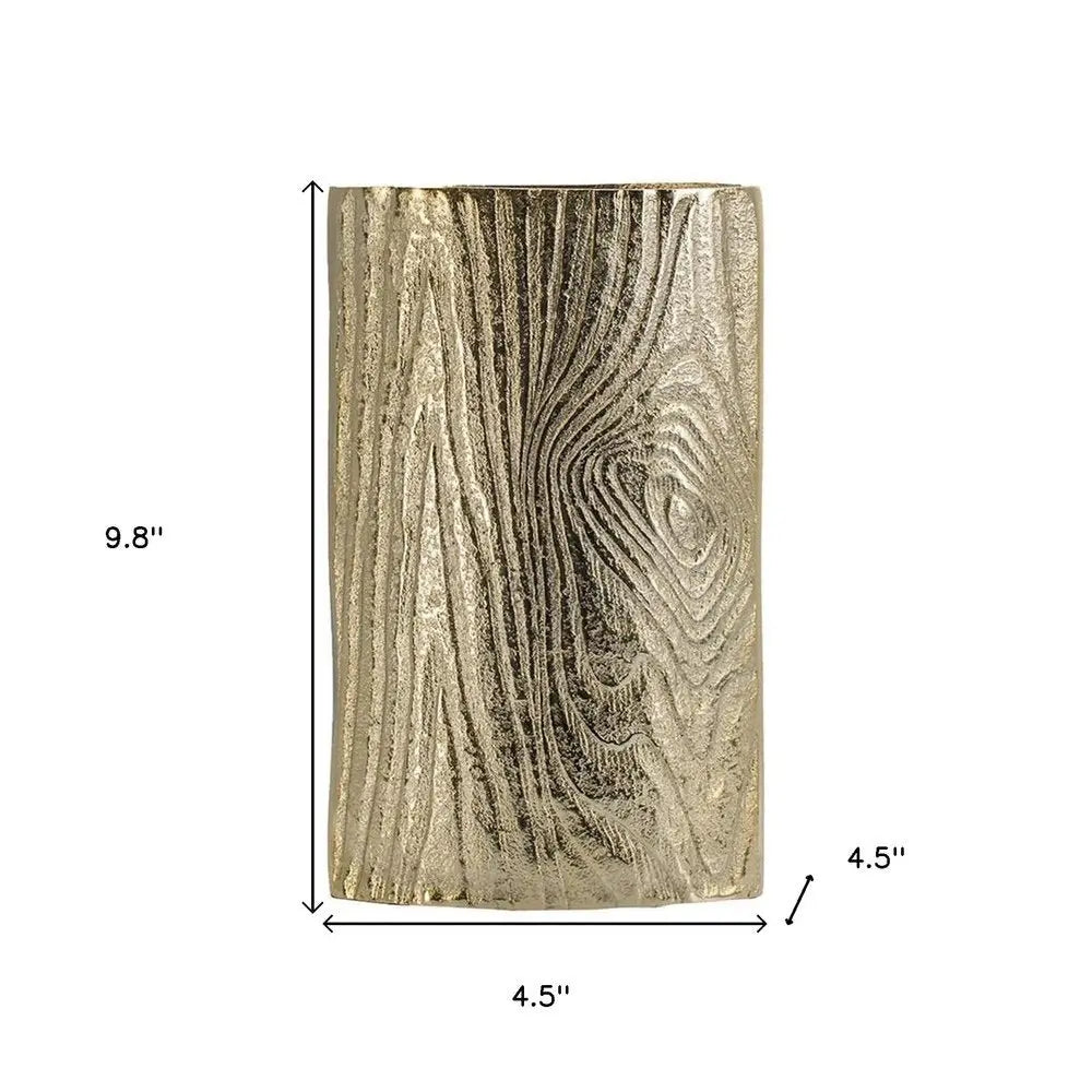 Jarrón de mesa ovalado de aluminio dorado de 10" con imitación de madera