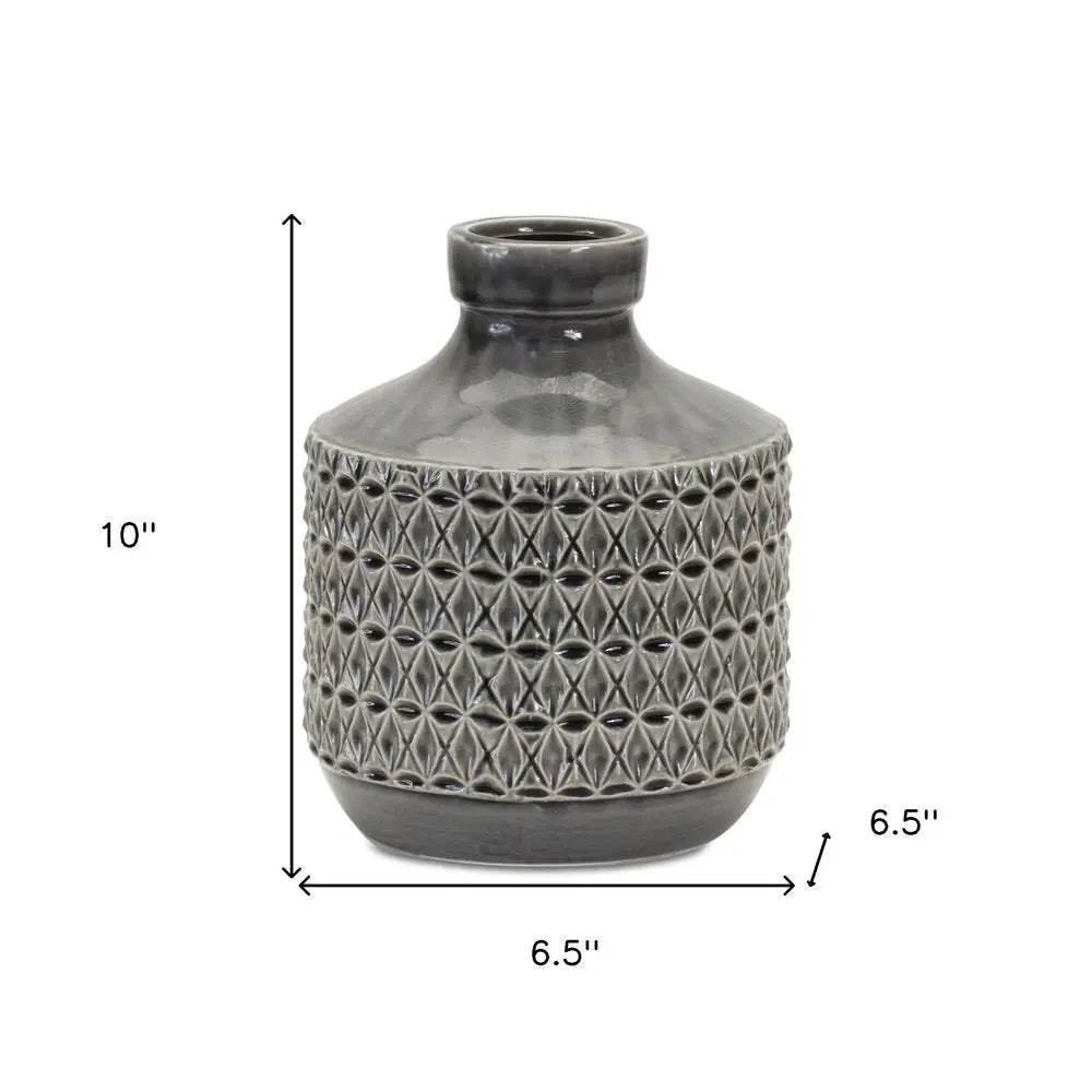 Jarrón de mesa de terracota con diseño geométrico de capullos grises de 10"