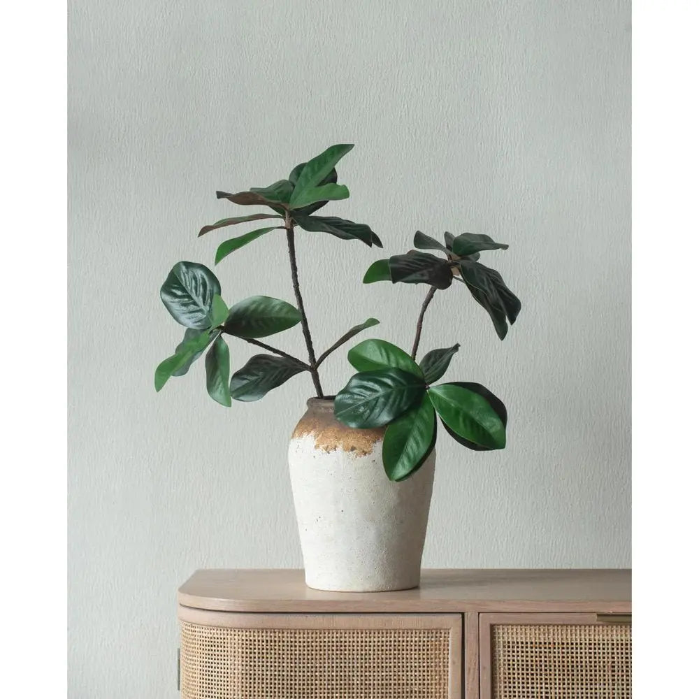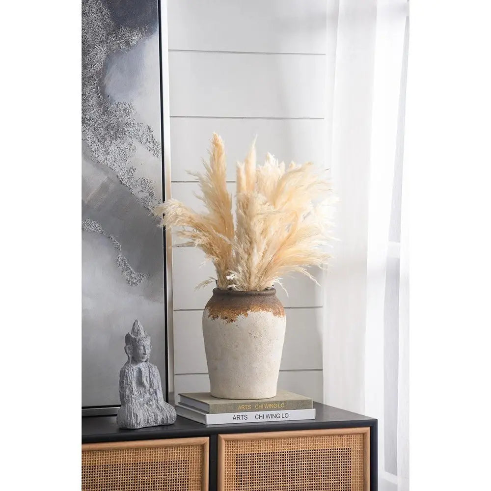 Jarrón redondo de cerámica color marfil y marrón de 25 cm
