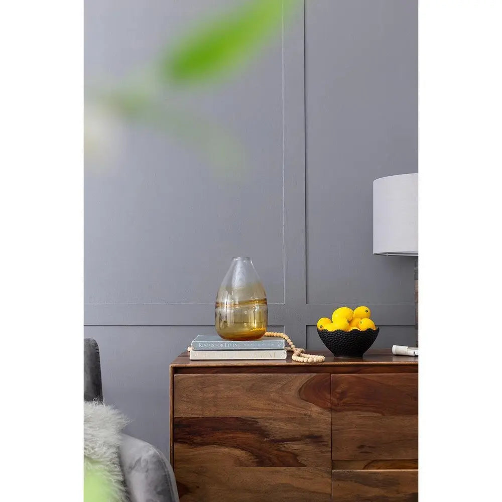Jarrón de mesa redondo de vidrio degradado transparente y ámbar de 11"