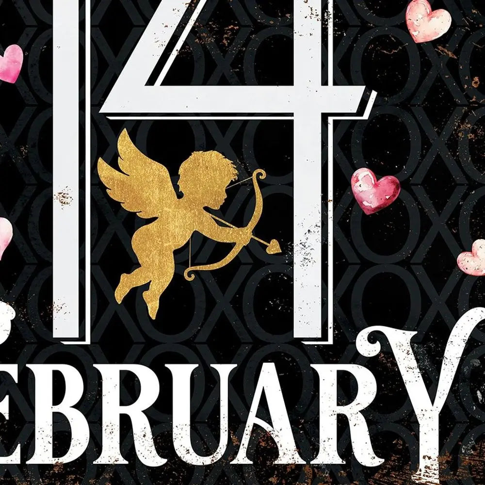 Lienzo cuadrado para colgar en la pared, 30 x 30 cm, con corazón en blanco y negro y rosa para el Día de San Valentín (14 de febrero)