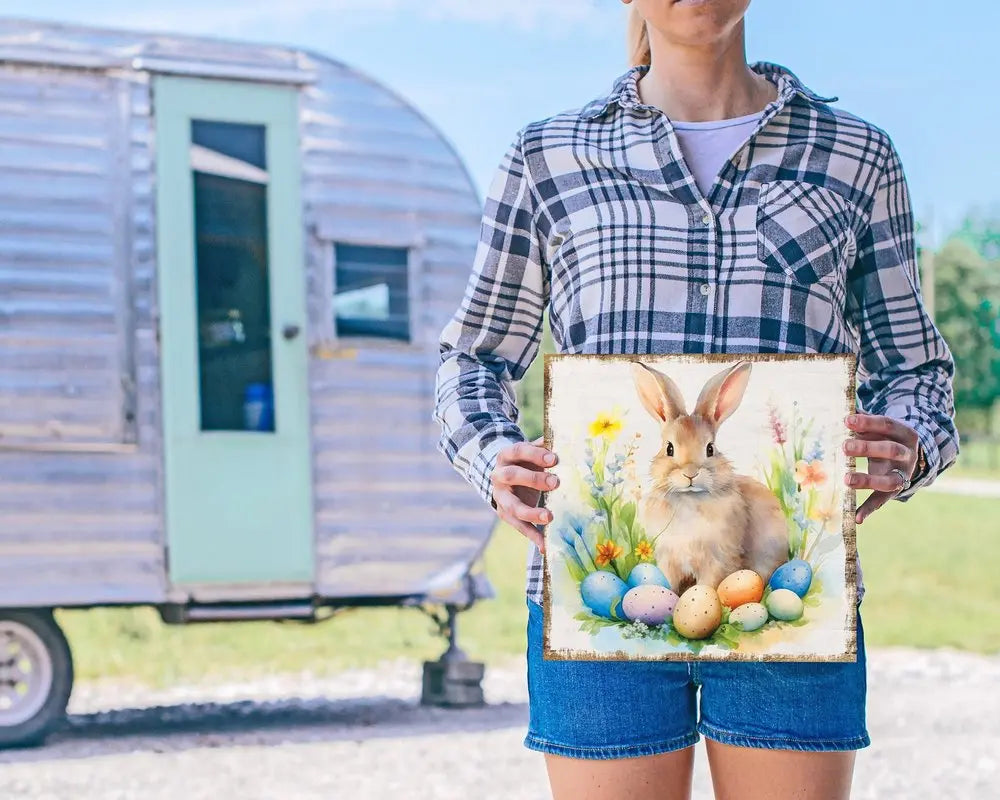 12" X 12" White Yellow And Pink Rabbit Easter Floral Canvas Square Hanging Wall Decor HomeRoots