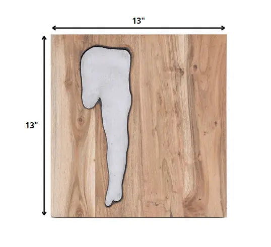 Azulejo de pared de madera natural y metal plateado de 13" x 13" x 1"