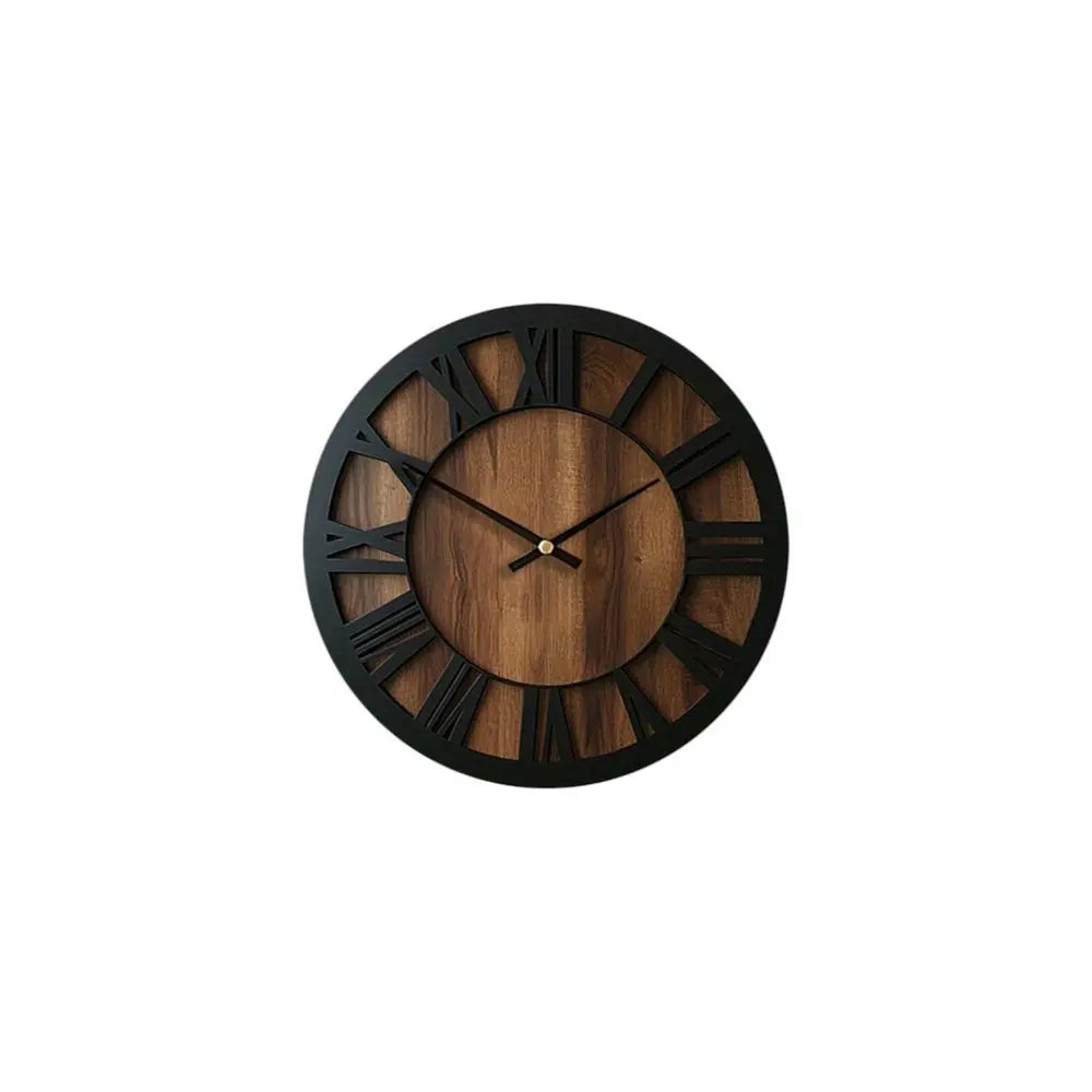 Reloj de pared redondo, analógico, silencioso, de madera maciza, color negro y marrón, de 14 pulgadas