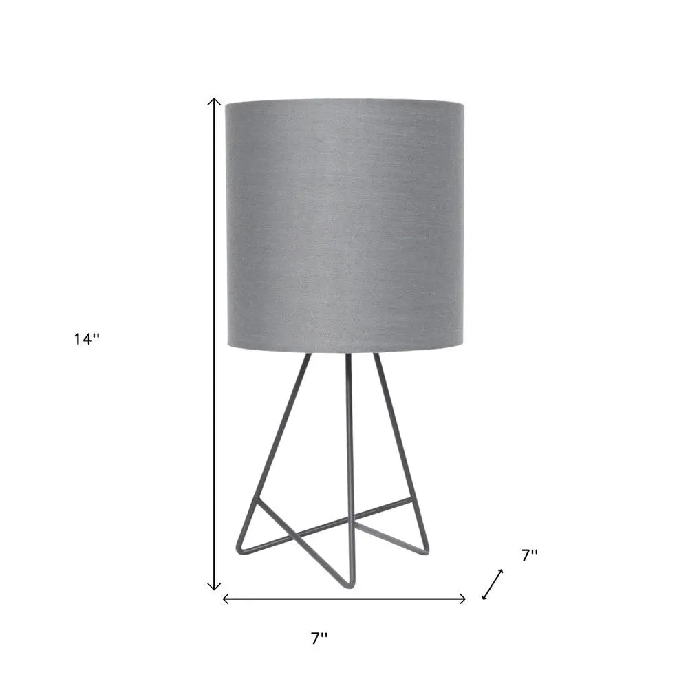 Lámpara de mesa LED con trípode de metal gris de 14" y pantalla de tambor gris