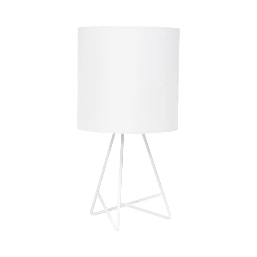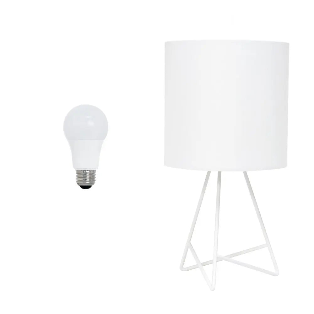 Lámpara de mesa LED con trípode de metal blanco de 14" y pantalla de tambor blanca