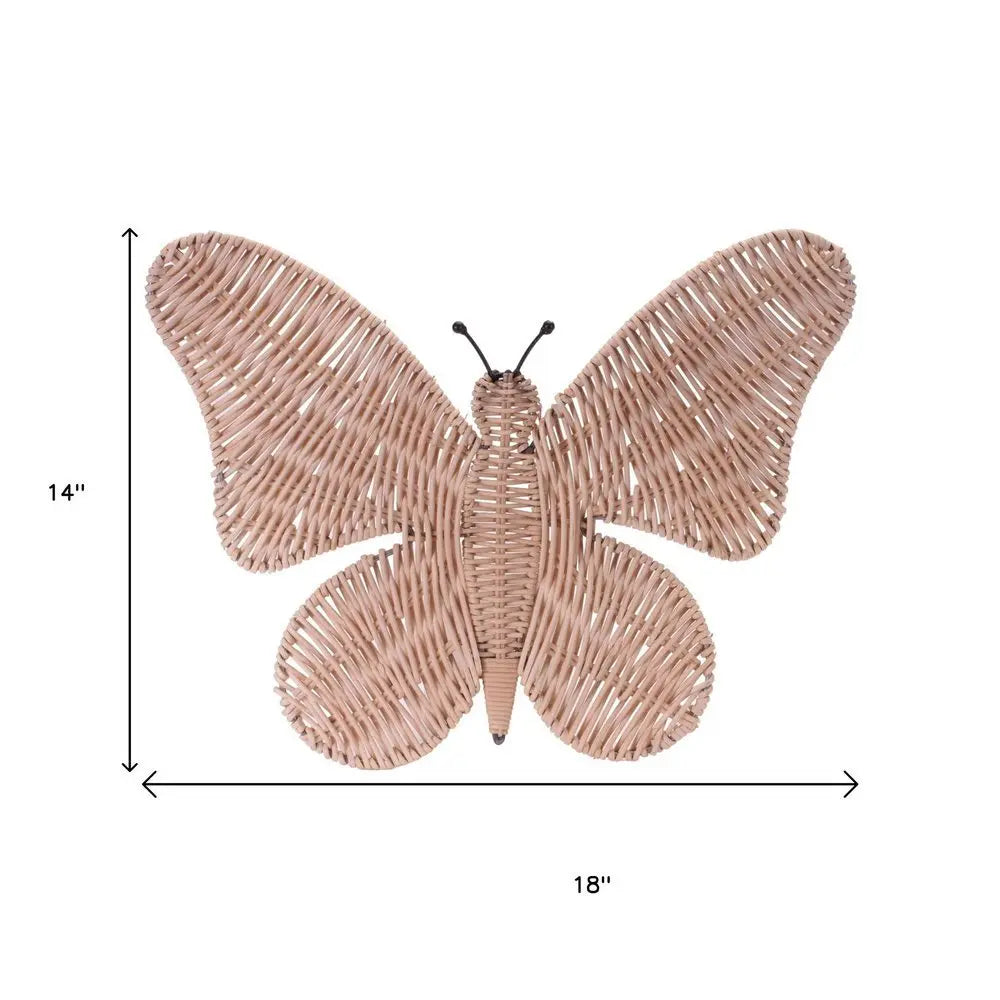 Escultura colgante dimensional de mariposa de ratán natural de 35,5 x 45,7 cm