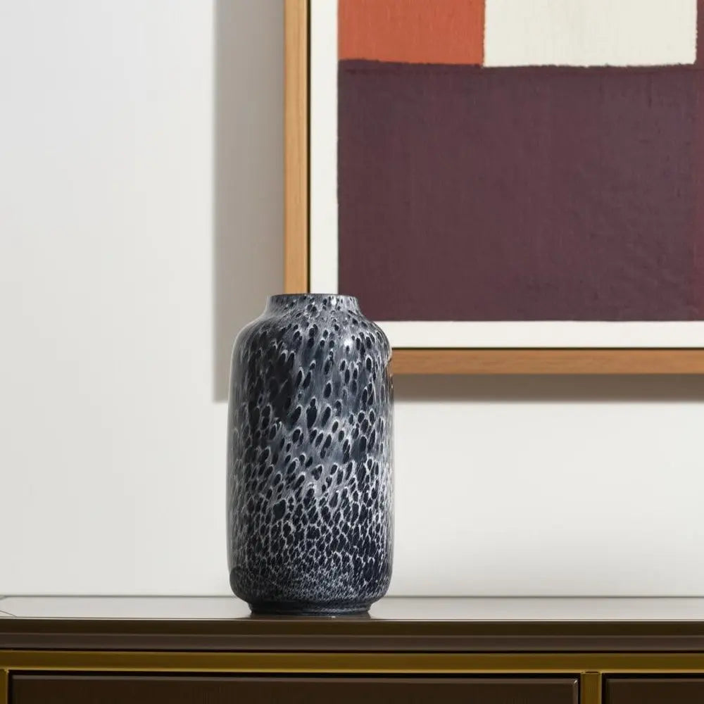 Jarrón de mesa cilíndrico de vidrio moteado negro de 15"