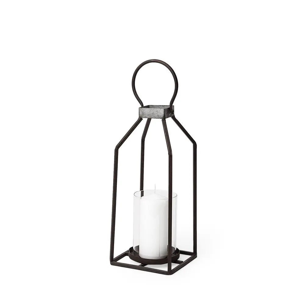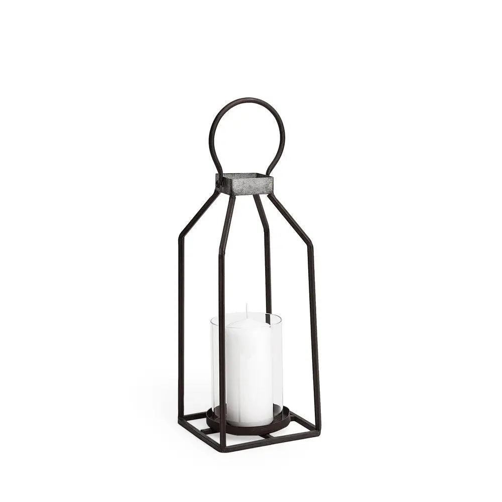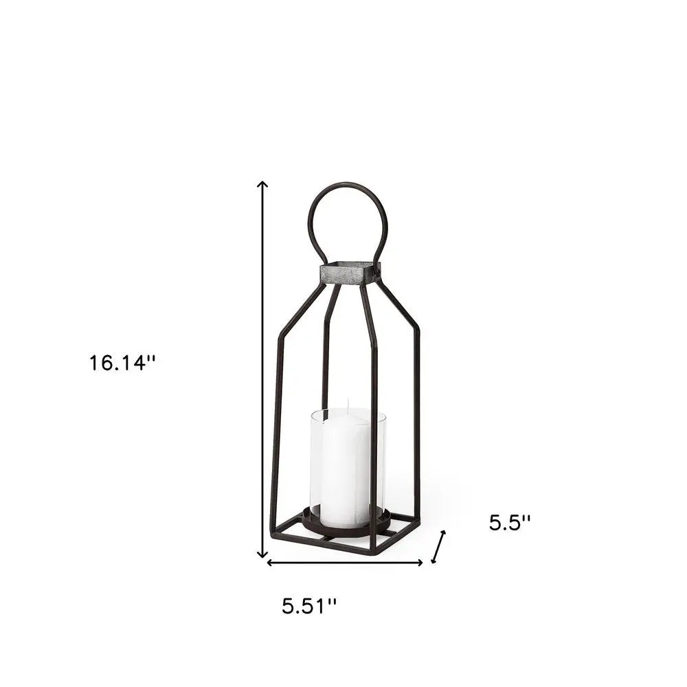 Candelabro votivo de mesa de metal y vidrio con diseño geométrico desgastado negro de 16"