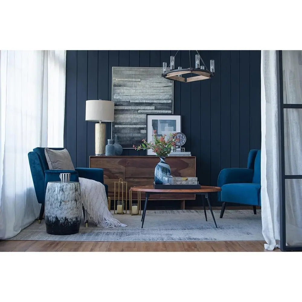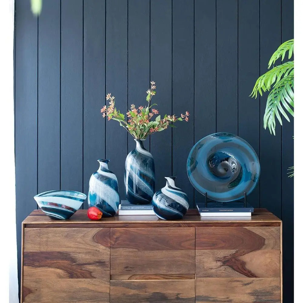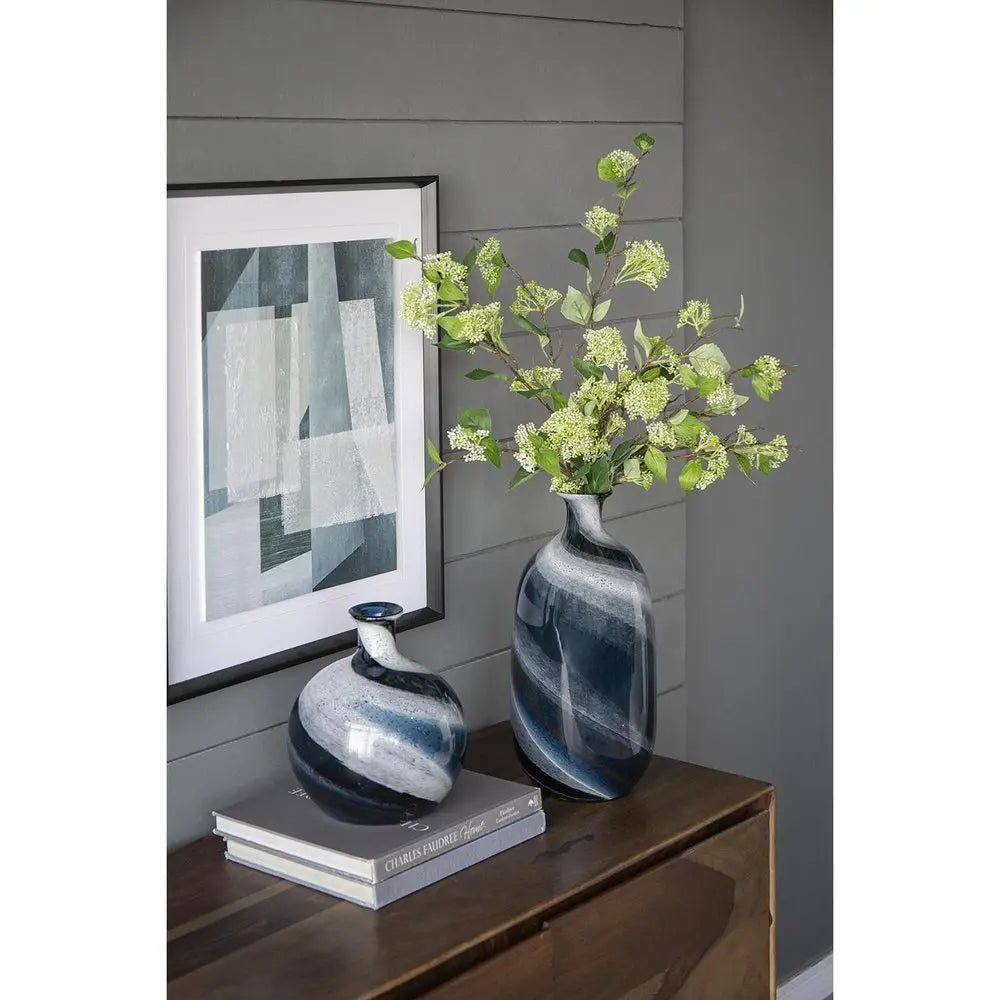 Jarrón de mesa de vidrio artístico con rayas azules y blancas de 40 cm