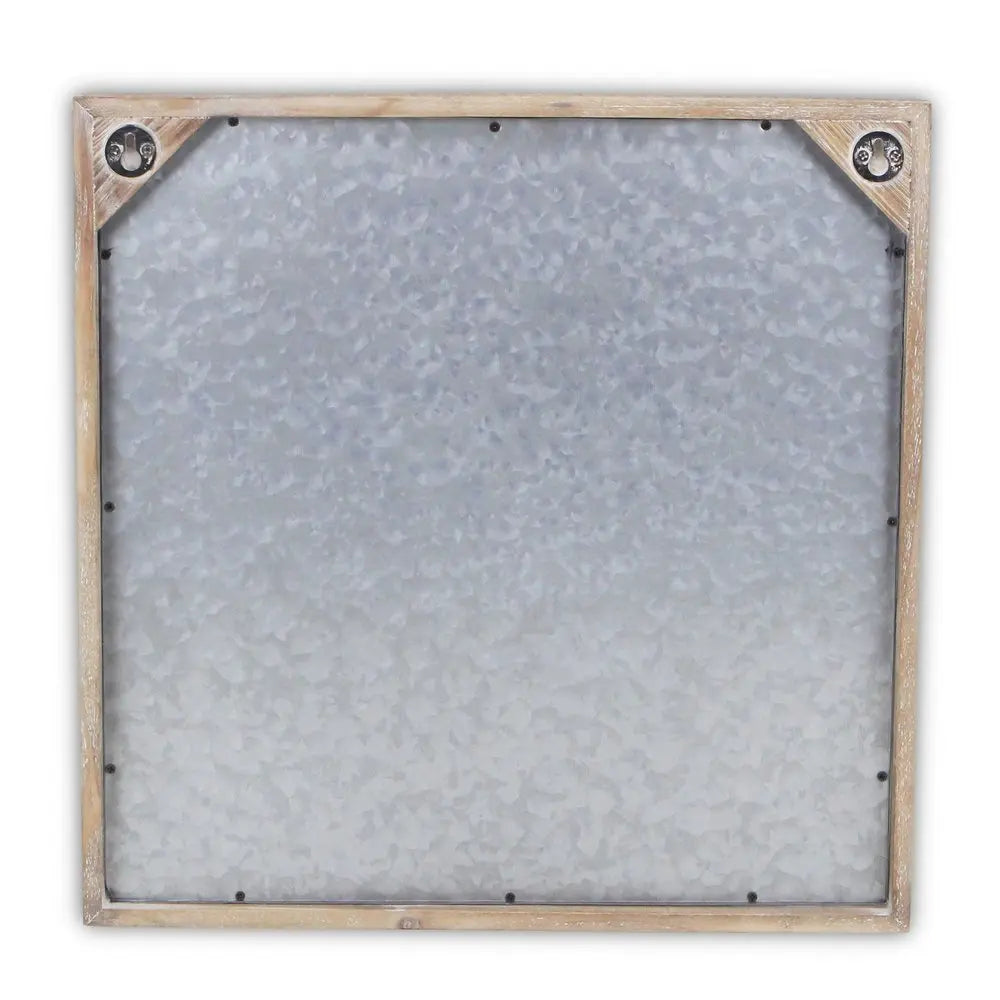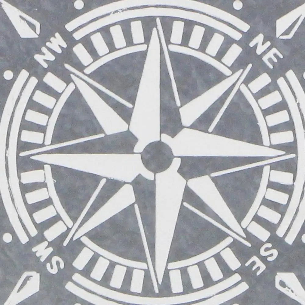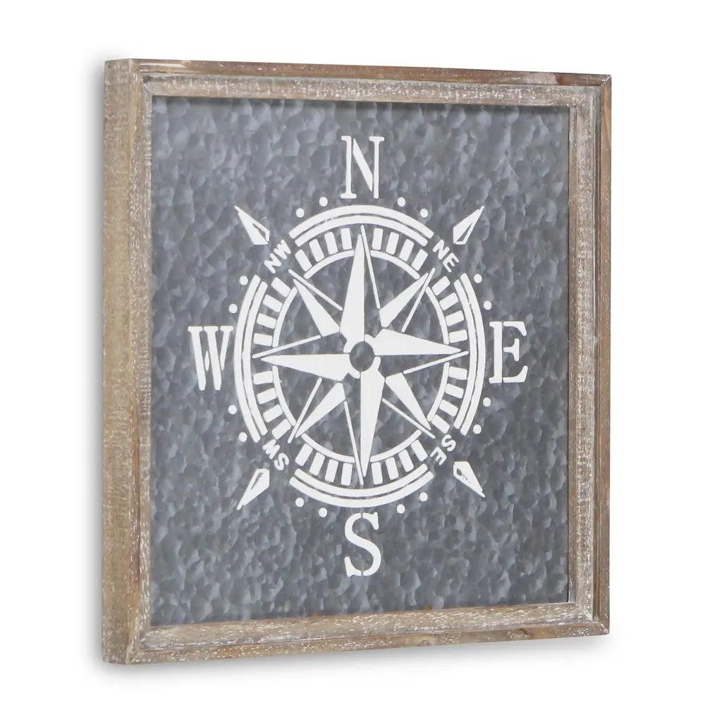 Cuadro cuadrado de madera y metal galvanizado con brújula gris de 43 x 43 cm