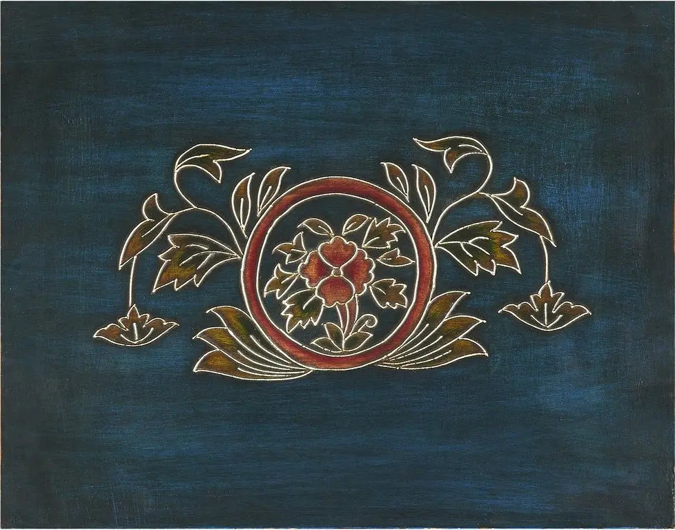 Gabinete de madera de 20" pintado a mano en azul y marrón con tres cajones