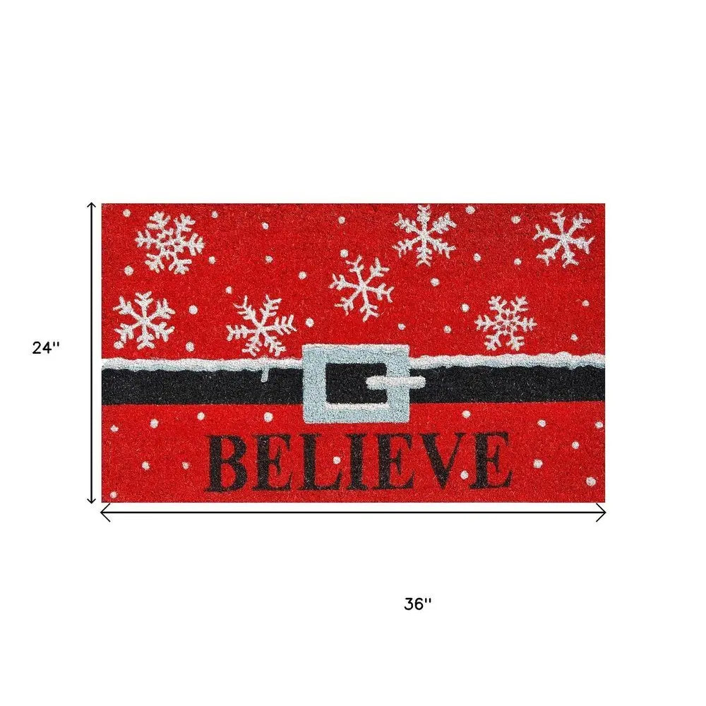 Felpudo navideño para exterior con copos de nieve de fibra de coco rojo y negro de 61 x 91 cm