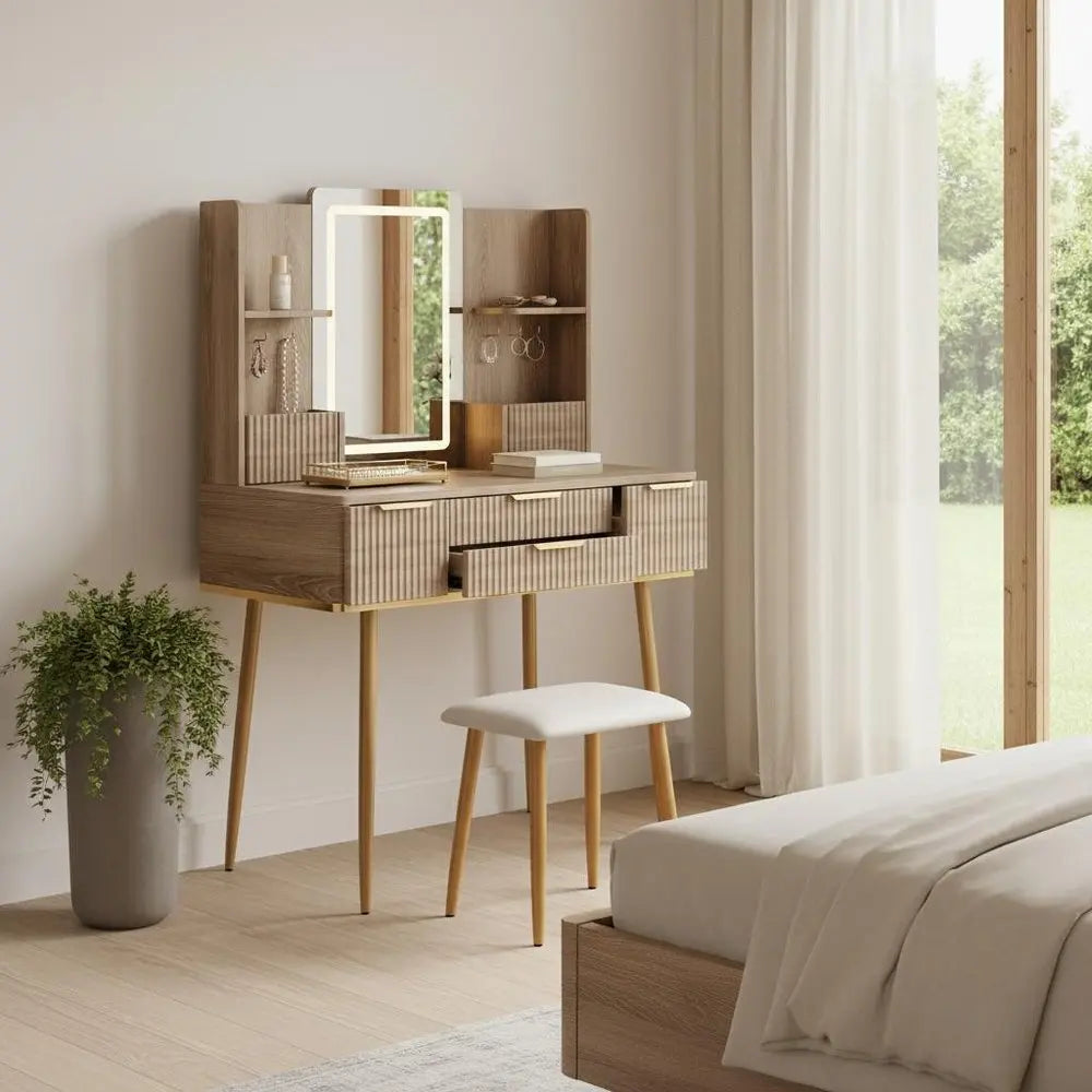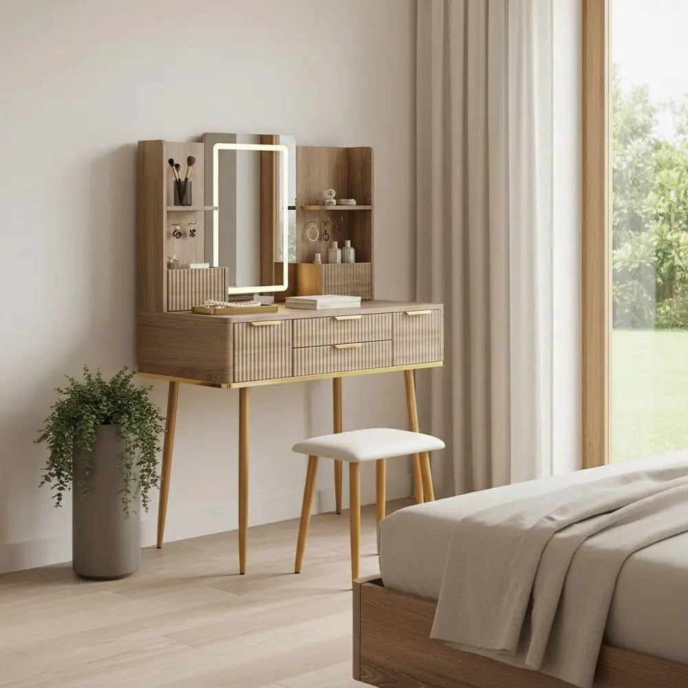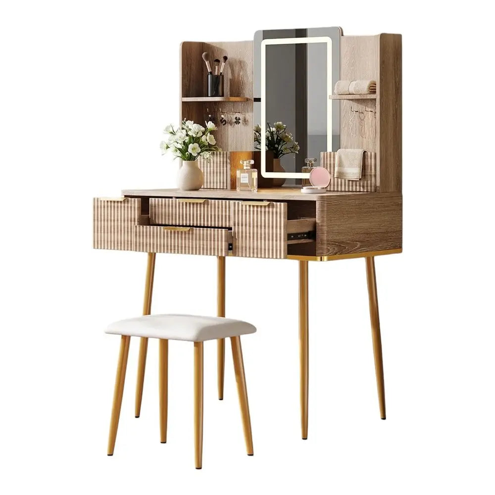 Cómoda de madera marrón de 30" con cuatro cajones iluminados
