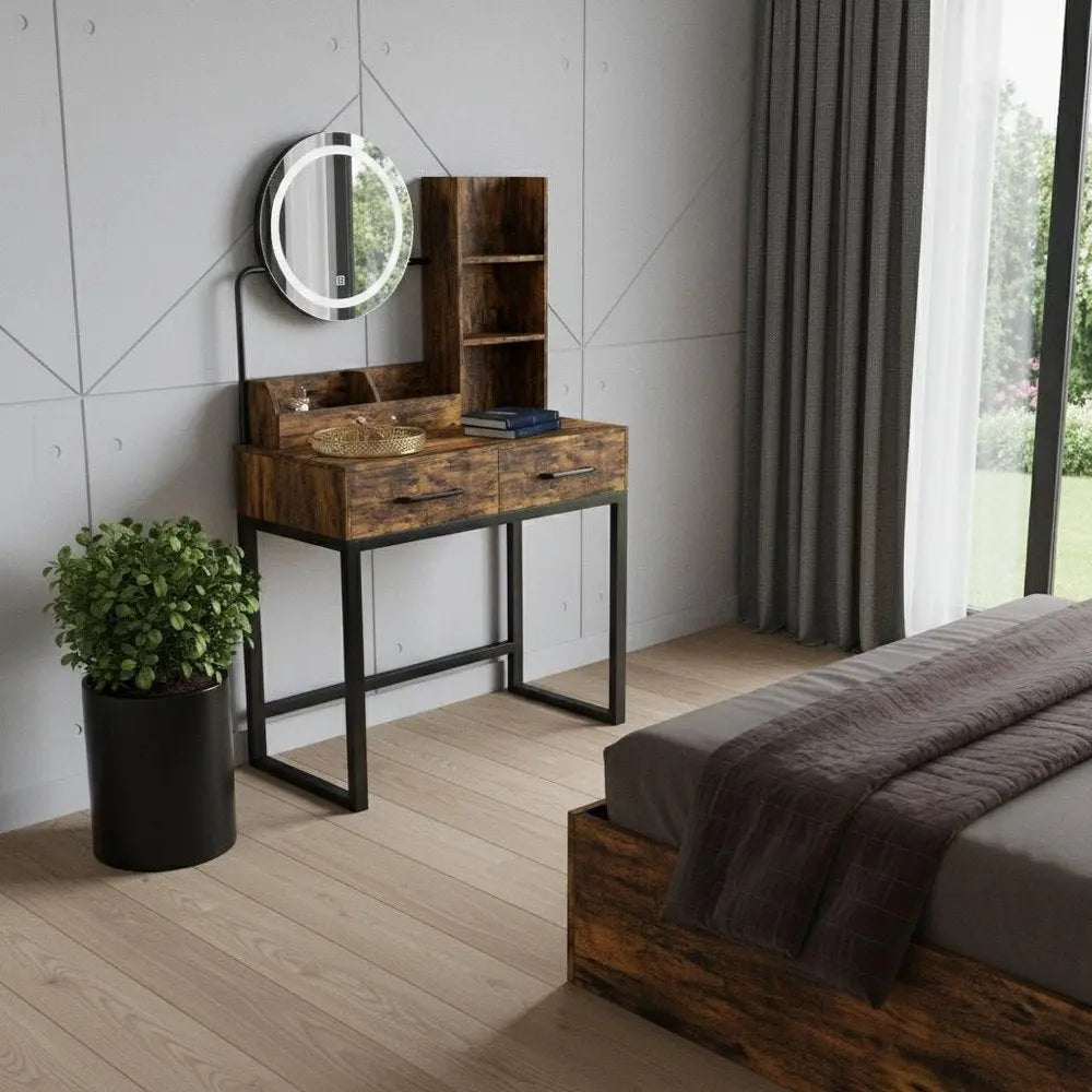 Cómoda de dos cajones iluminada de madera marrón de 31"