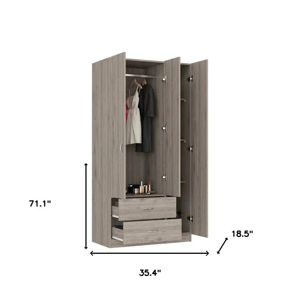 Cómoda combinada de dos cajones de madera manufacturada de roble claro de 71"