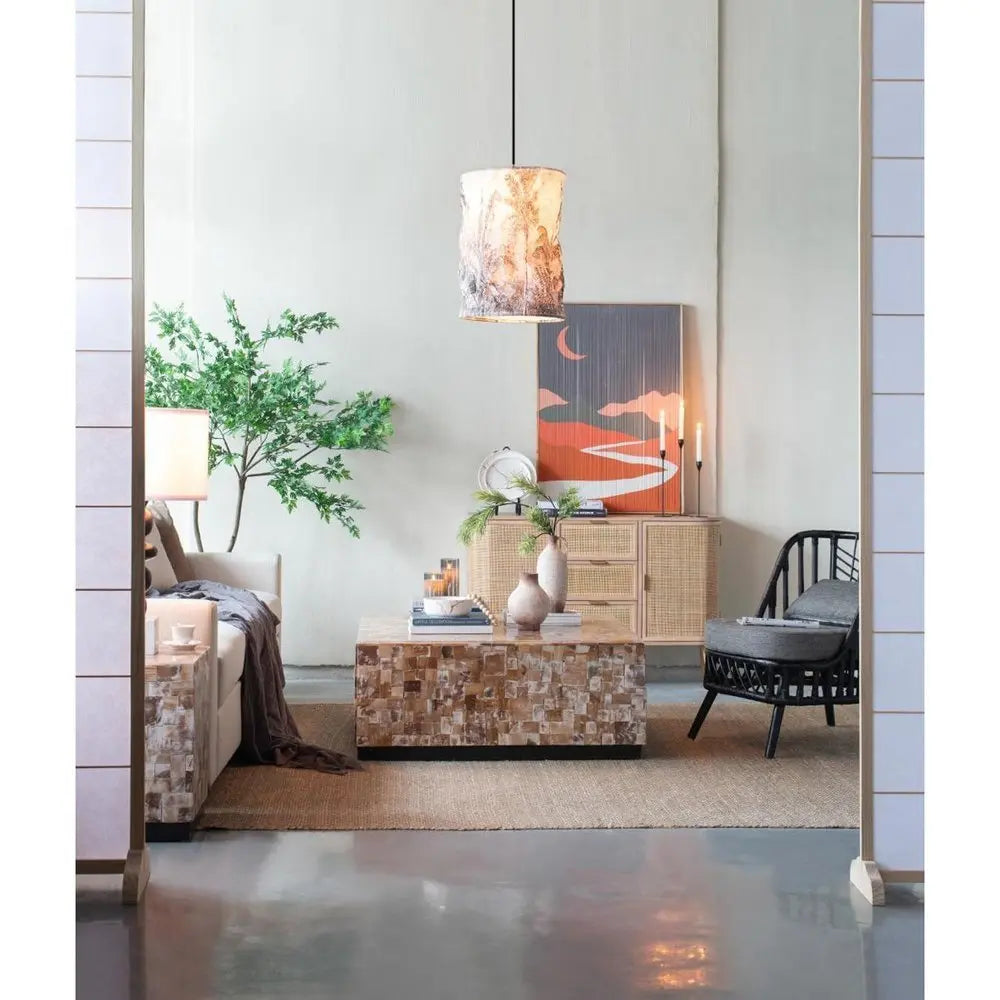 Jarrón de mesa redondo de cerámica de 20 cm en color marfil y marrón