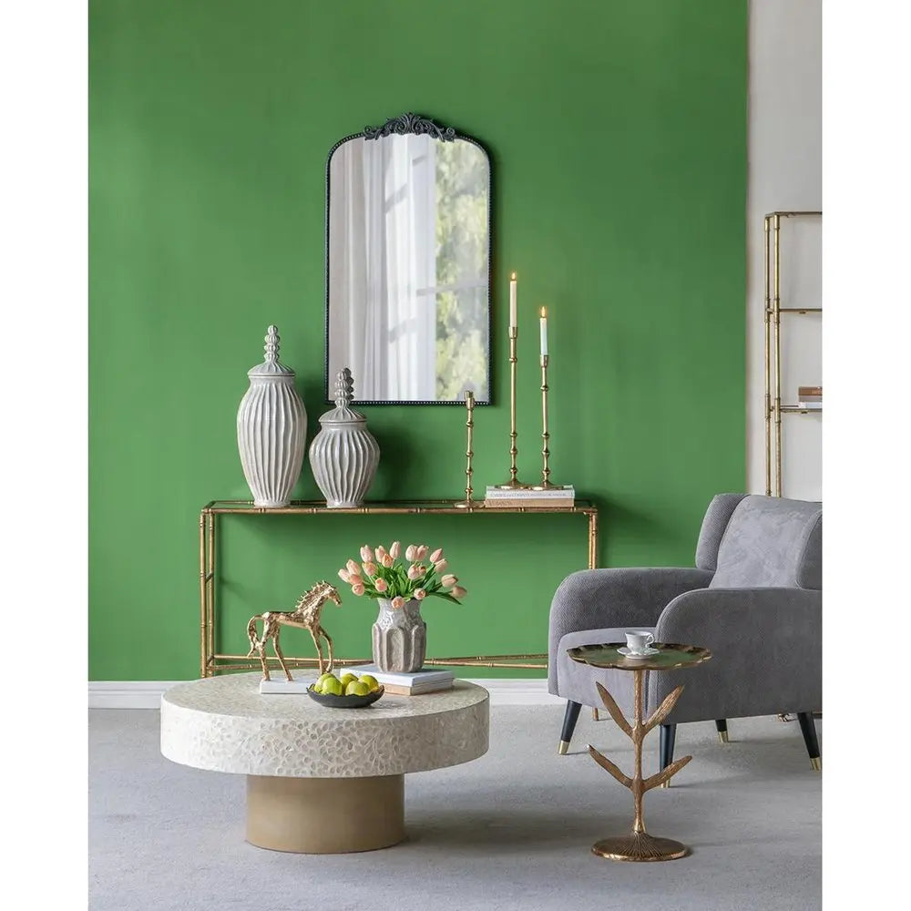 Jarrón de cerámica texturizado de 8" en tonos salvia y gris