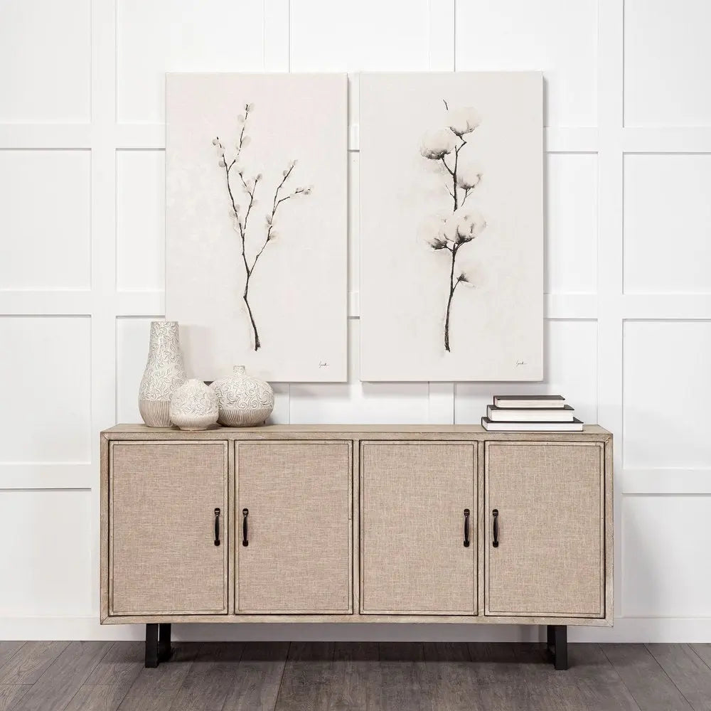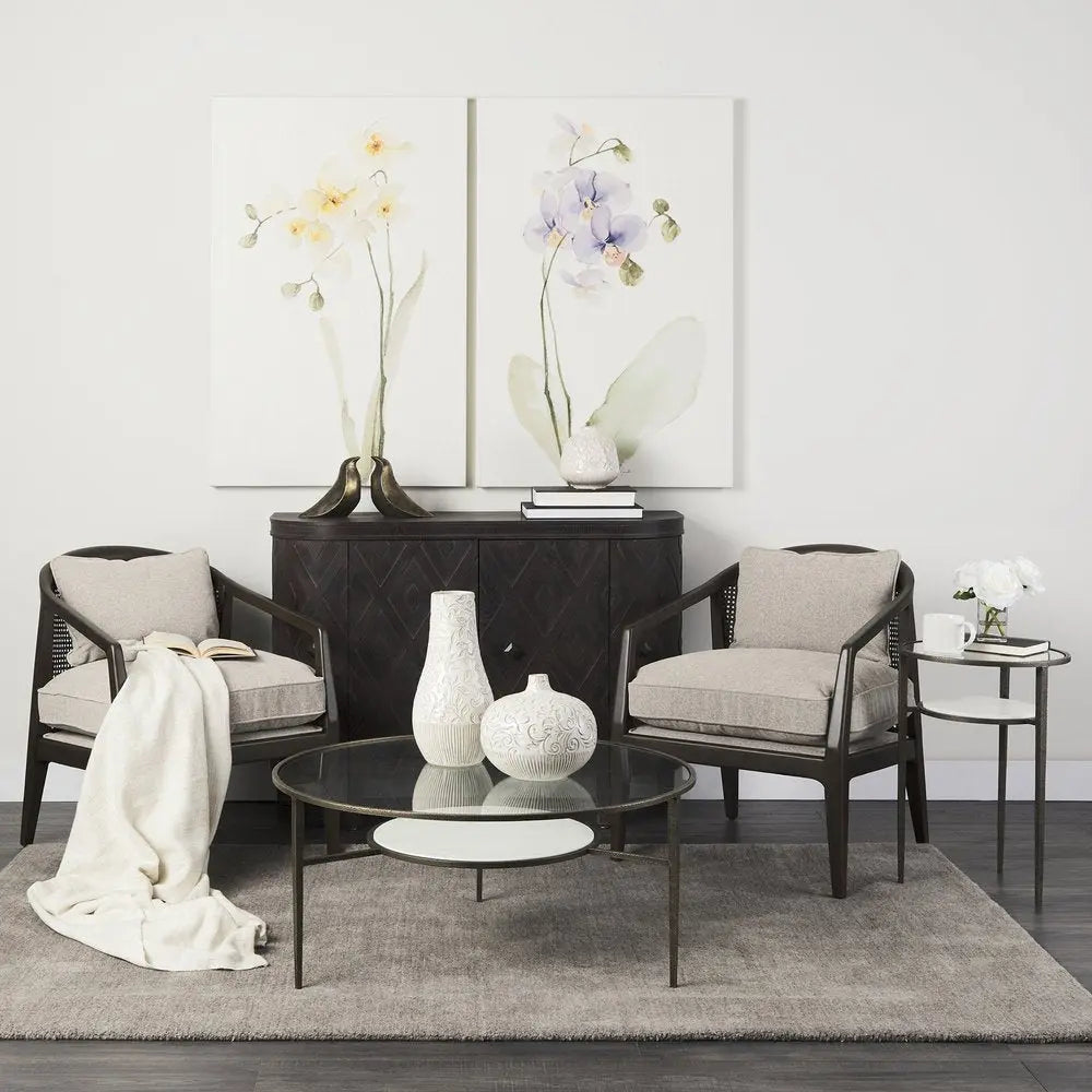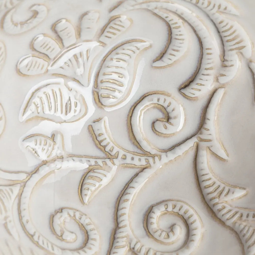 Jarrón de mesa de cerámica cilíndrica abstracta blanca de 8"