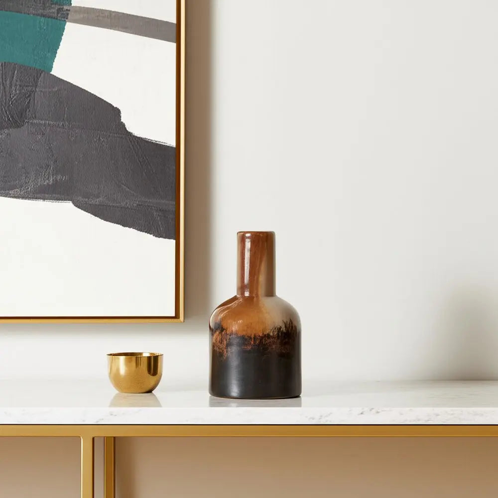 Jarrón de mesa abstracto de vidrio tulipán de 23 cm en tonos crema ámbar y marrón oscuro