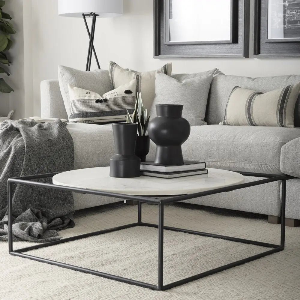 Jarrón de mesa de cerámica cilíndrica abstracta negra de 9"