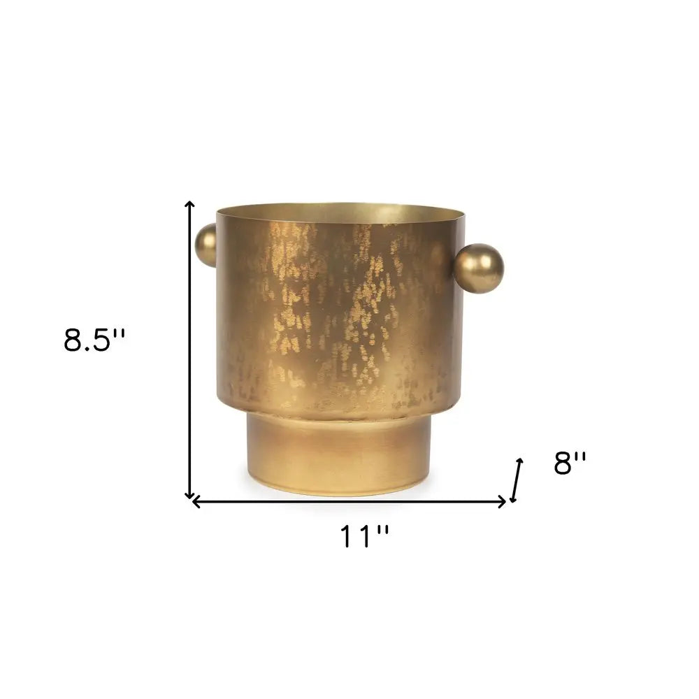 Jarrón de mesa redondo de hierro fundido dorado de 9"