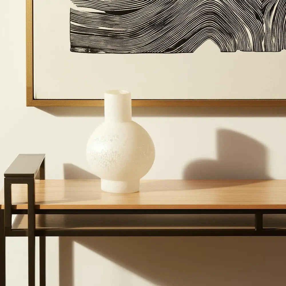 Jarrón de mesa de vidrio soplado a mano moteado blanco de 9"