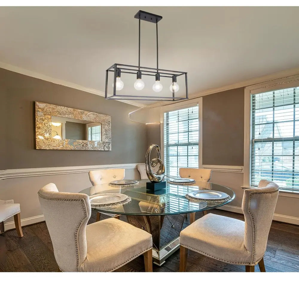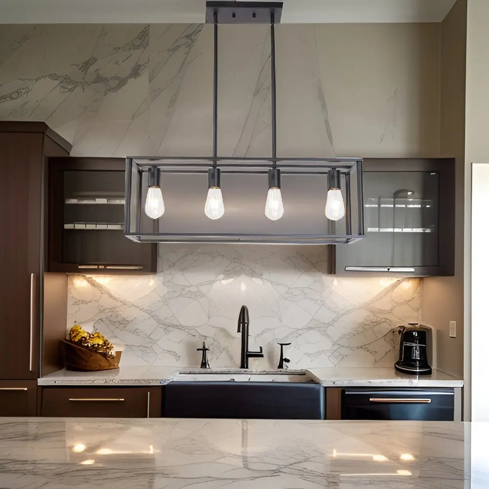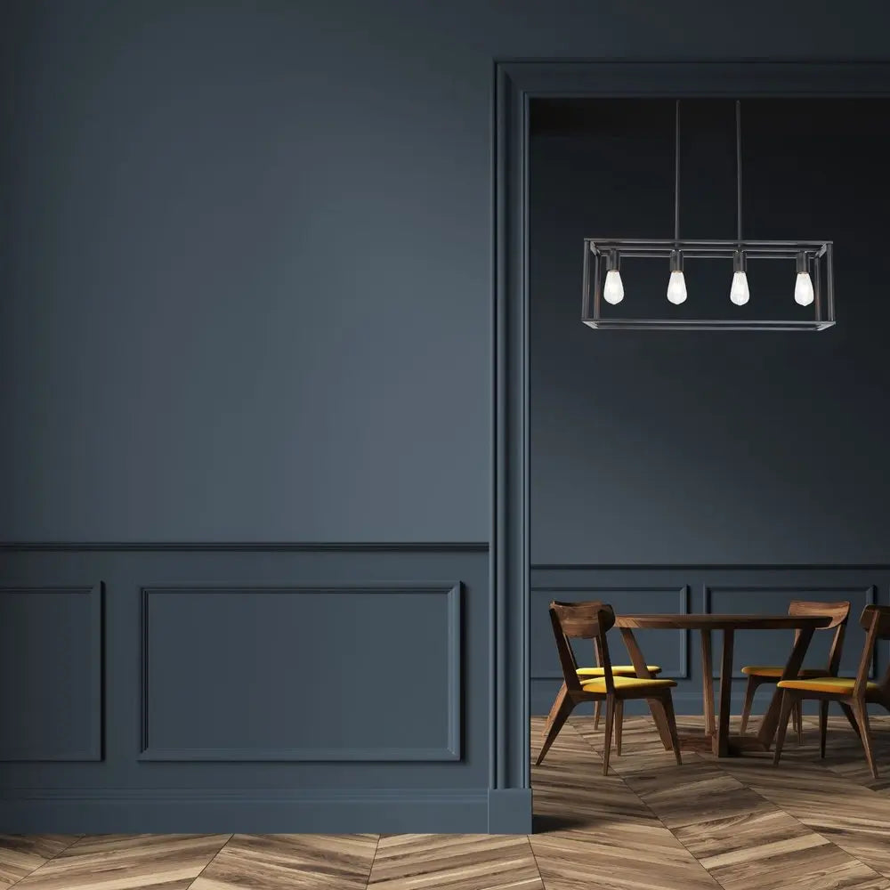 Ilumina tu espacio con esta preciosa lámpara colgante rectangular de metal negro de cuatro luces. Con su acabado negro, esta lámpara transmite un aire moderno y actual que combina con el diseño industrial o incluso con la decoración de una casa de campo moderna. Ideal para cocinas, comedores, recibidores, vestíbulos, salones o bares. Esta fabulosa lámpara colgante es una excelente manera de añadir diseño y luminosidad a cualquier espacio de tu hogar. 14,5 cm de alto x 23,5 cm de ancho x 76,2 cm de profundidad.