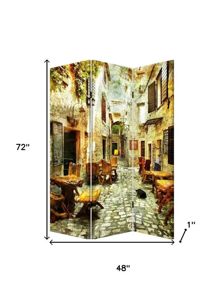 Biombo divisor de ambientes de tres paneles con diseño de calle europea romántica
