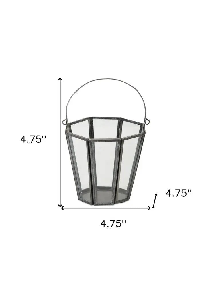 Juego de cuatro portavelas votivas de mesa de hierro y vidrio con diseño geométrico envejecido en gris