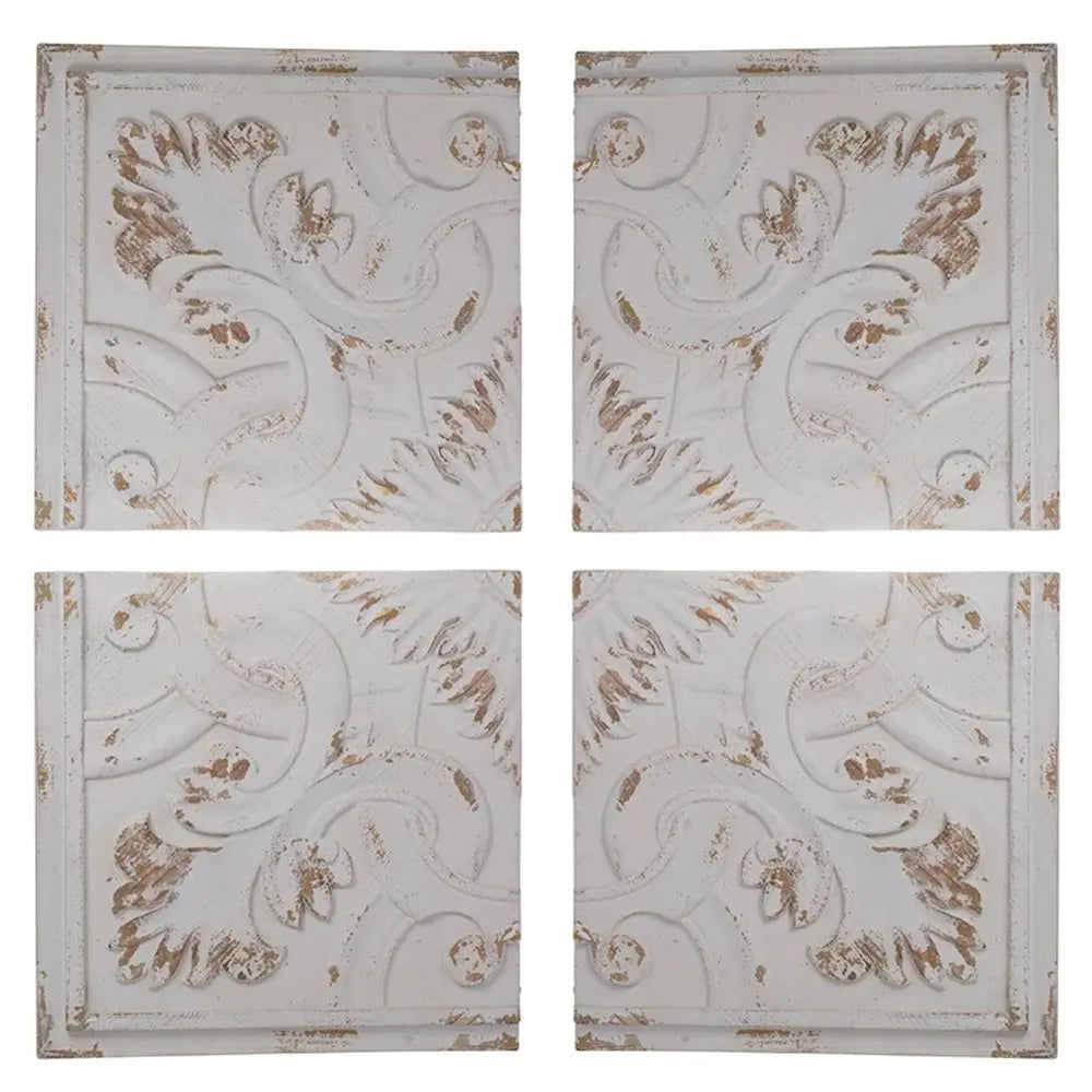 Conjunto de cuatro cuadros con marco cuadrado de madera blanca
