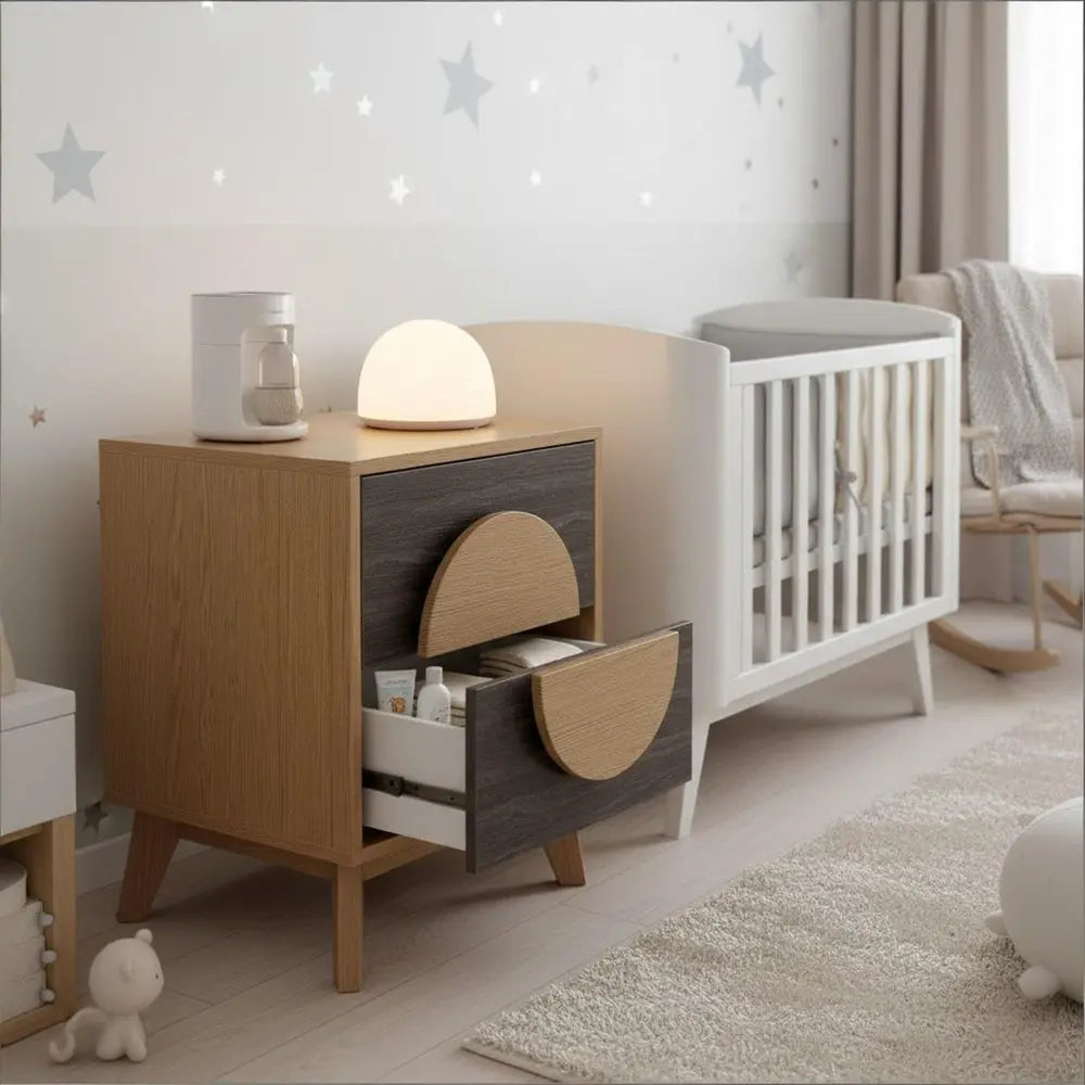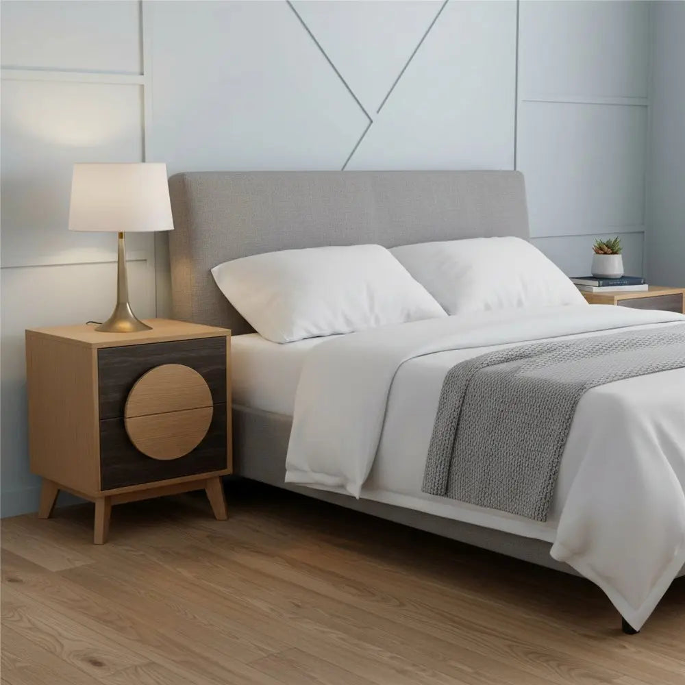Juego de dos mesitas de noche cuadradas de 21" de madera maciza de roble y marrón oscuro con dos cajones