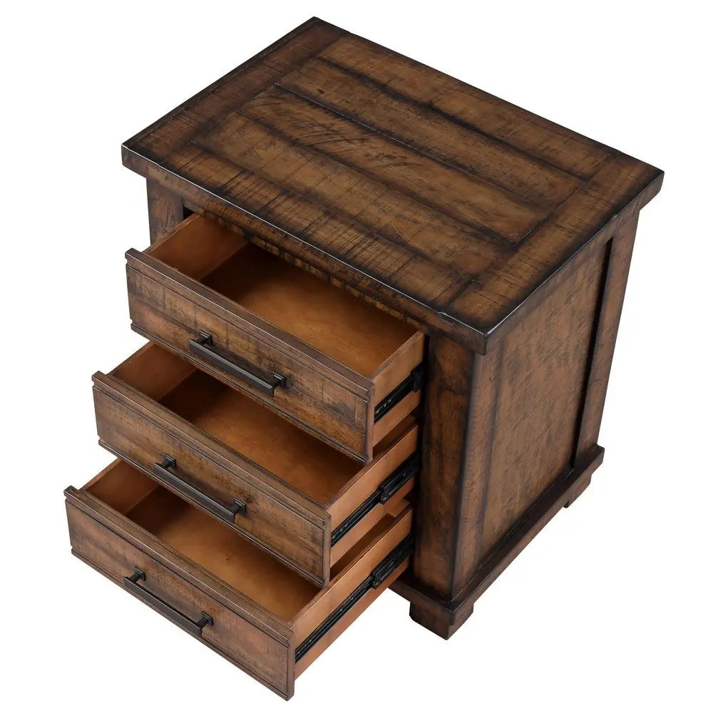 Juego de dos mesitas de noche de tres cajones de madera maciza de nogal envejecida de 26"