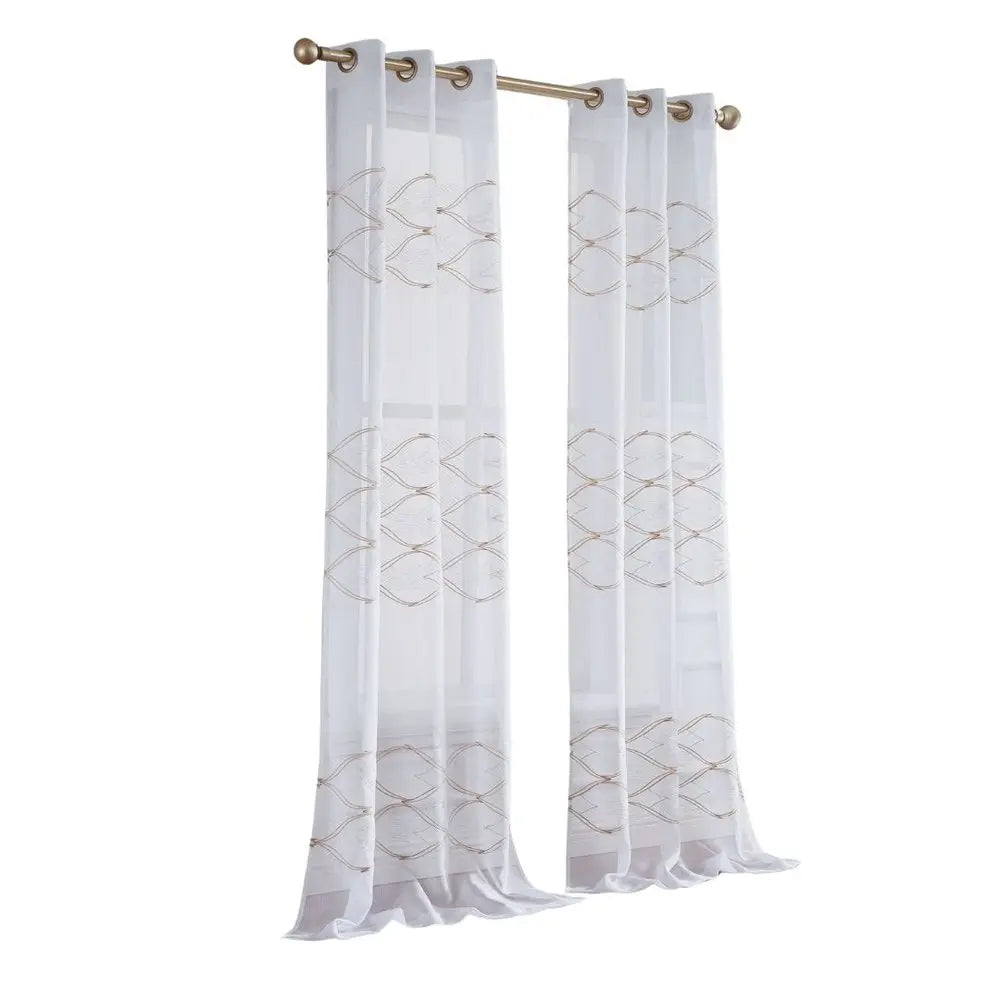 Juego de dos cortinas semitransparentes doradas y blancas de 96"