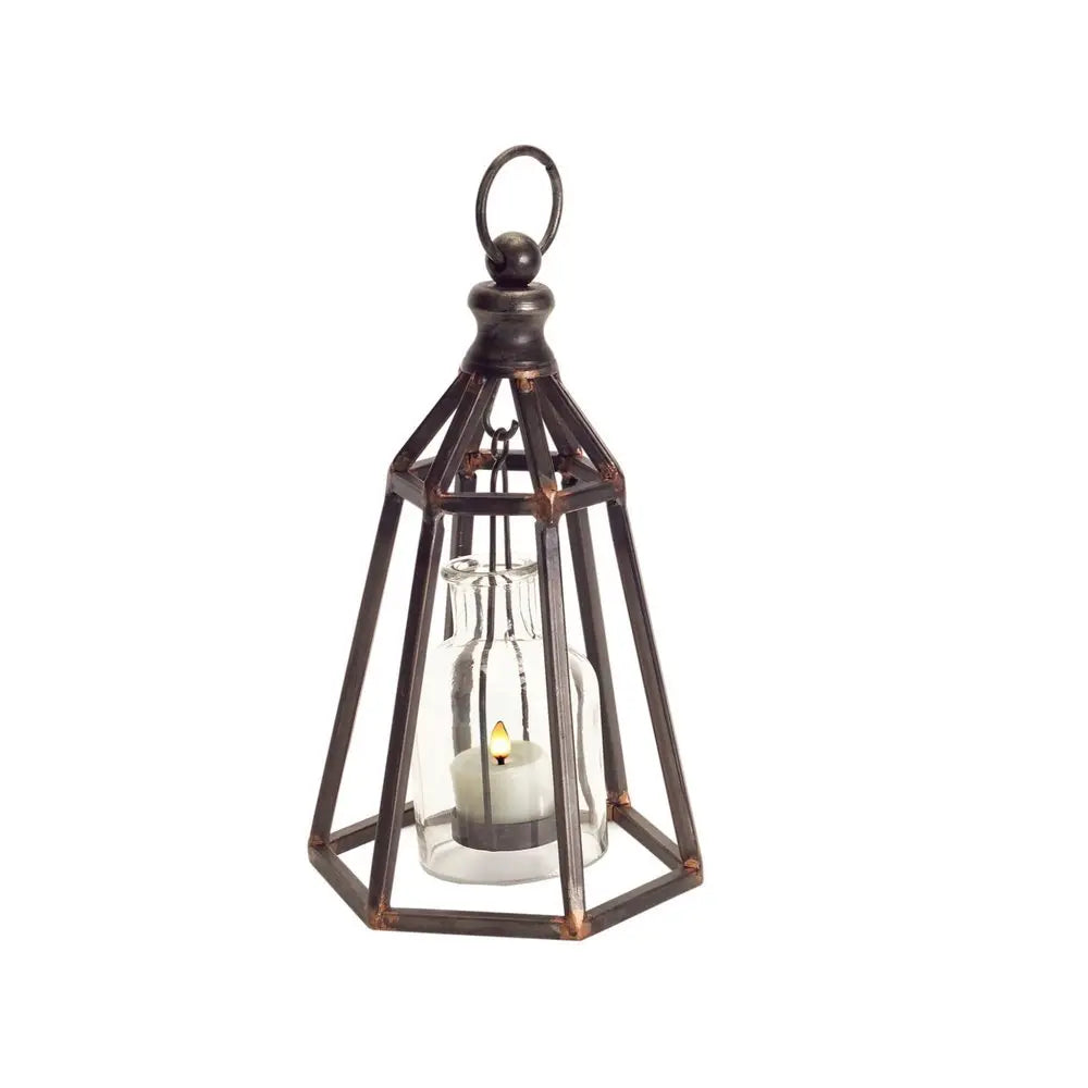 Juego de dos portavelas de mesa geométricos de metal negro