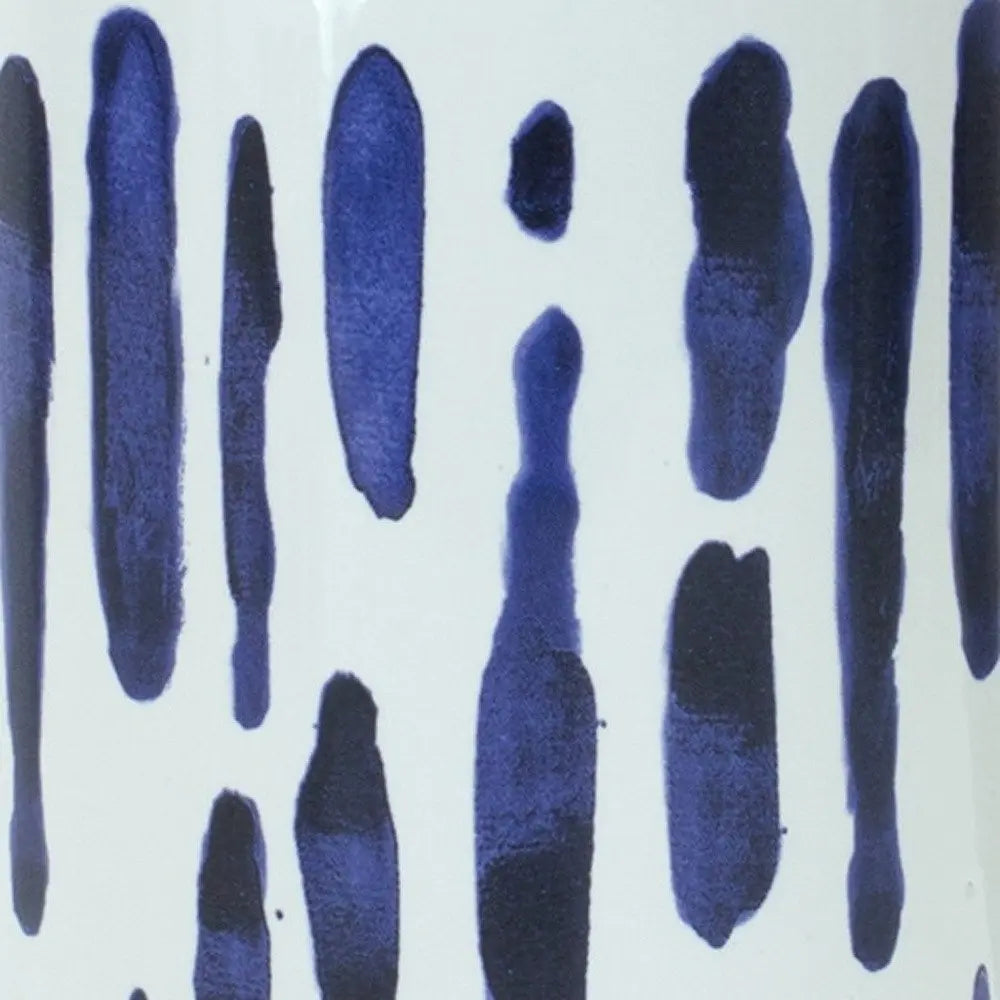 Juego de dos jarrones de cerámica cilíndricos abstractos en azul y blanco