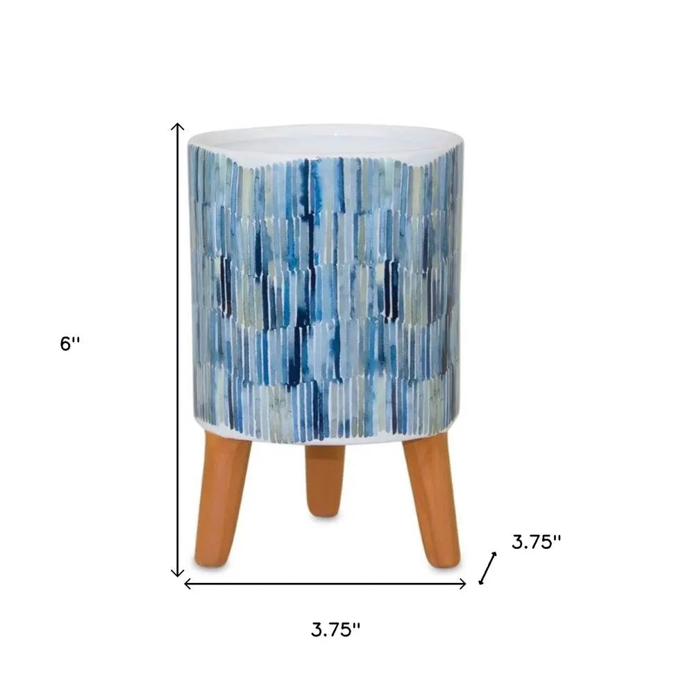 Juego de dos macetas elevadas redondas de 2 onzas de cerámica blanca y terracota azul