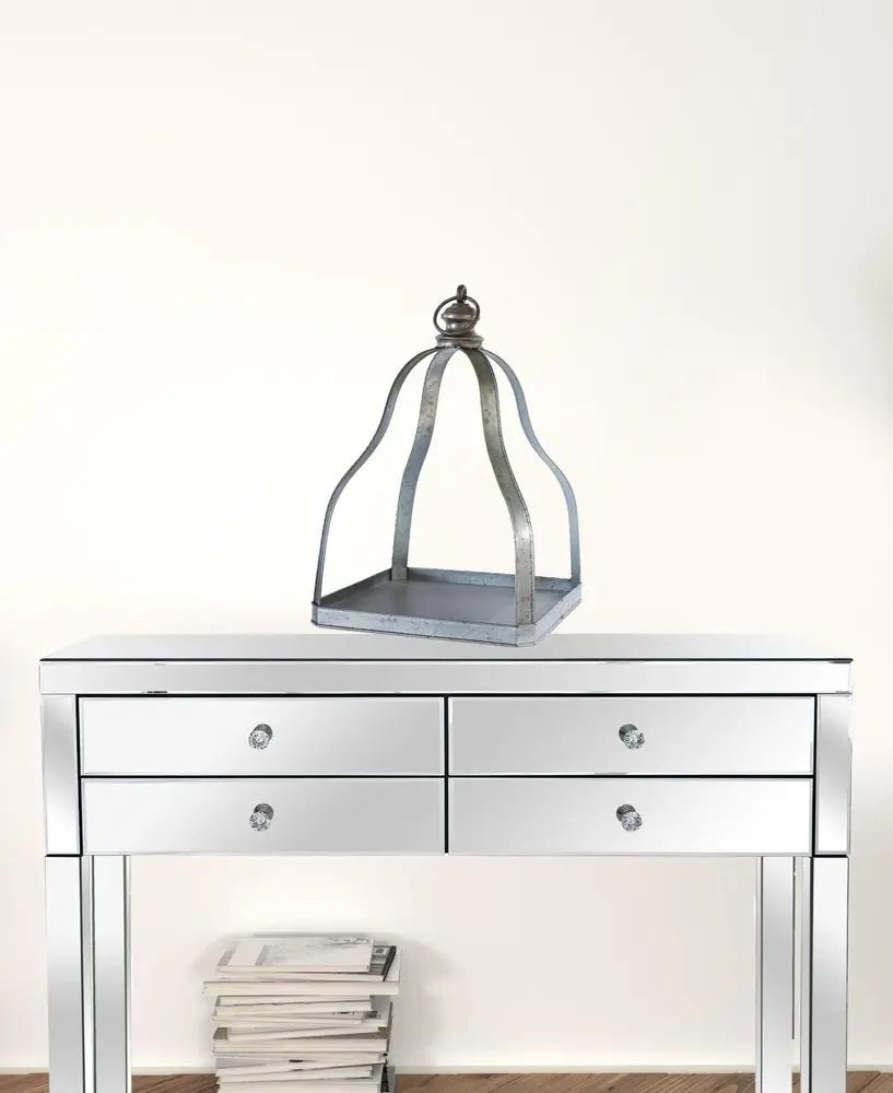 Juego de dos portavelas de mesa de metal galvanizado envejecido de color gris.