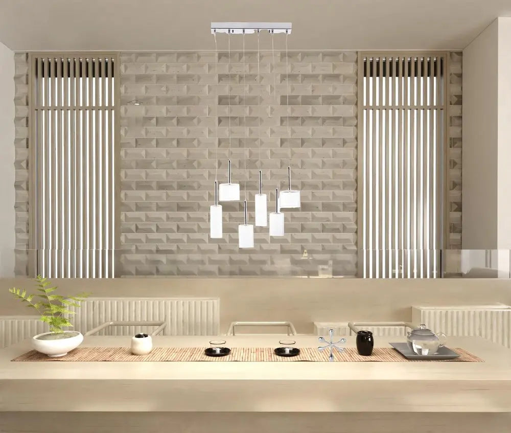 Lámpara de techo LED de metal con seis luces y pantallas para cocina plateada