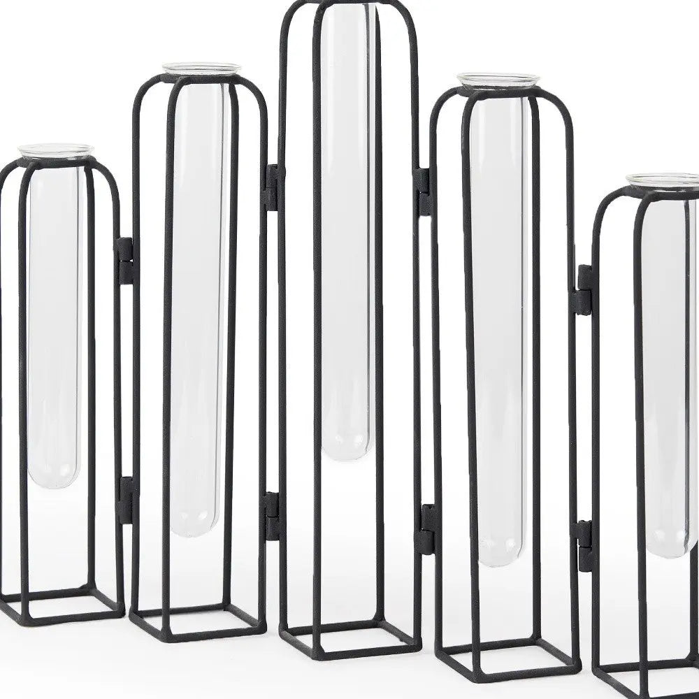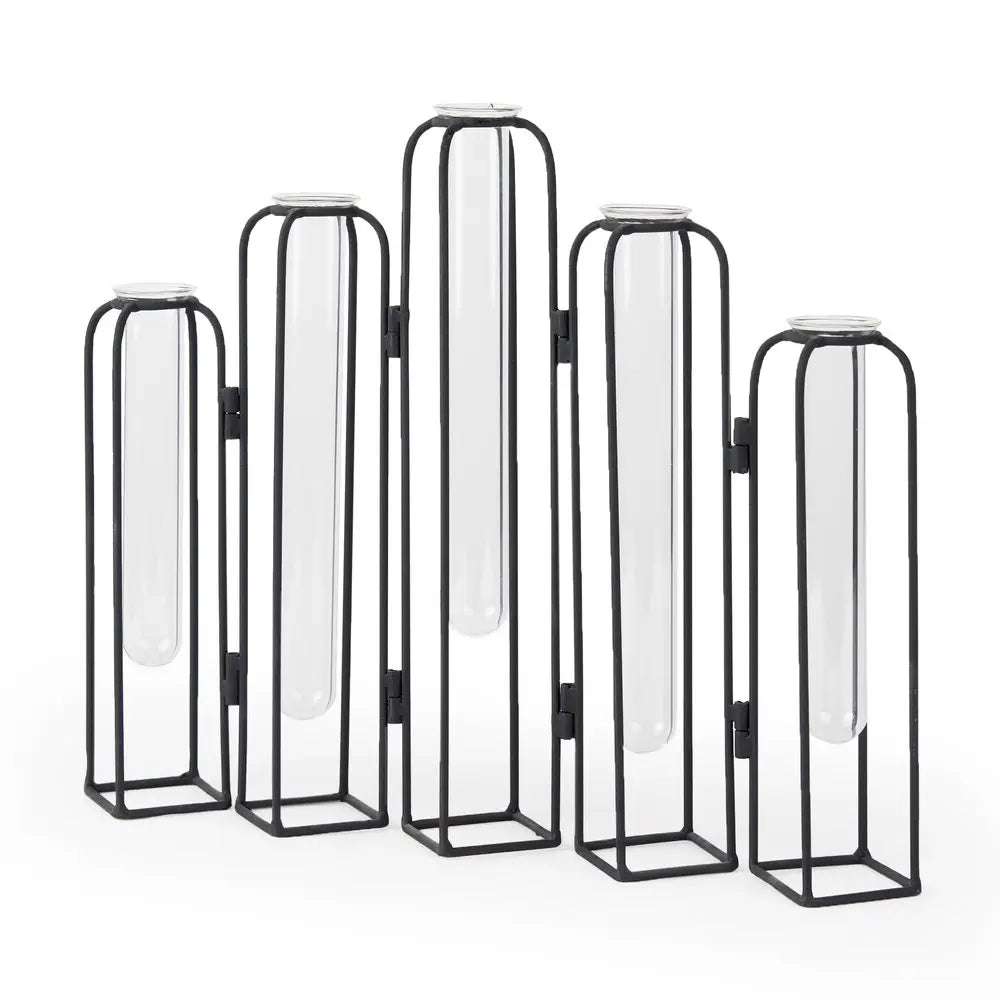 Ideal for displaying fresh or dried flowers, it effortlessly elevates your home ambiance. This exquisite table vase combines the elegance of glass with the modern touch of metal, making it a stunning centerpiece for any room. Its watertight design ensures that your floral arrangements stay fresh and vibrant without any mess. The sleek lines and contemporary aesthetic of this vase complement a variety of decor styles, from minimalist to eclectic. Whether placed on a dining table, coffee table, or shelf, it adds a touch of sophistication and charm. Perfect for celebrating special occasions or simply brightening up your everyday space, this vase is a versatile addition to your home. 11.02-inch h x 13.78-inch w x 2.56-inch d.