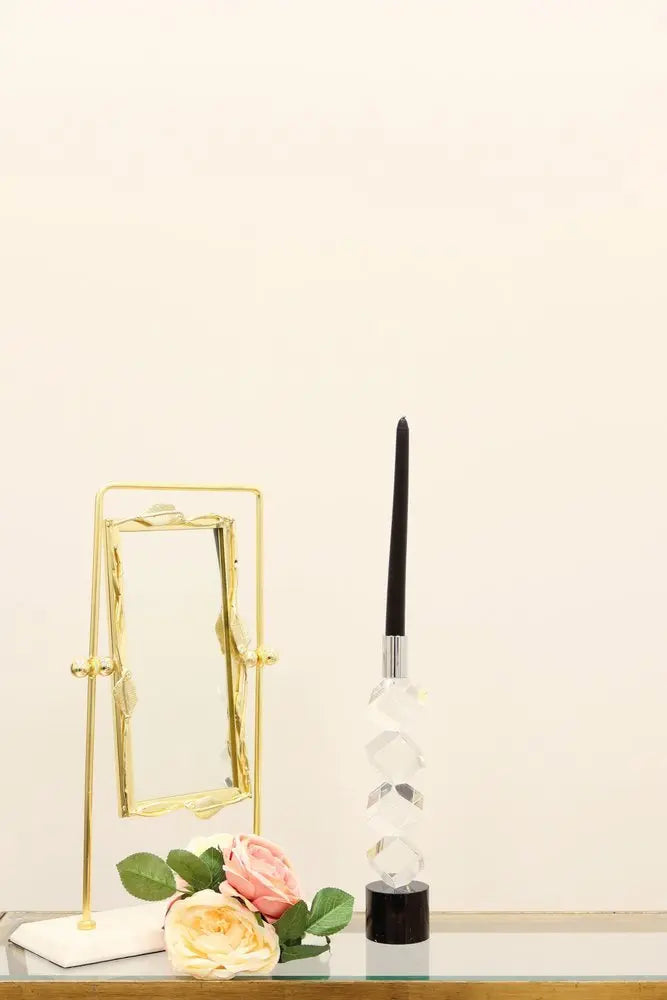 11" Silver Clear And Black Crystal Tabletop Taper Candlestick