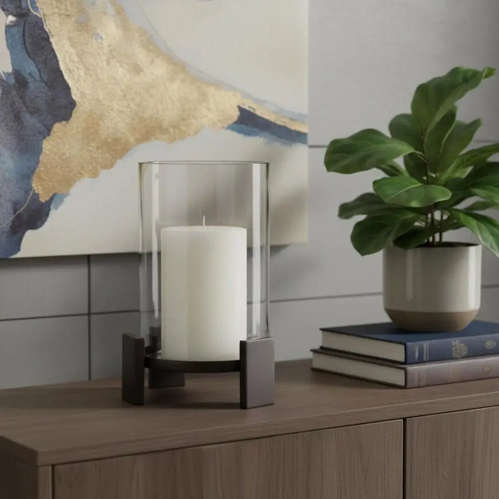 12" Black Glass Abstract Tabletop Hurricane Candle Holder