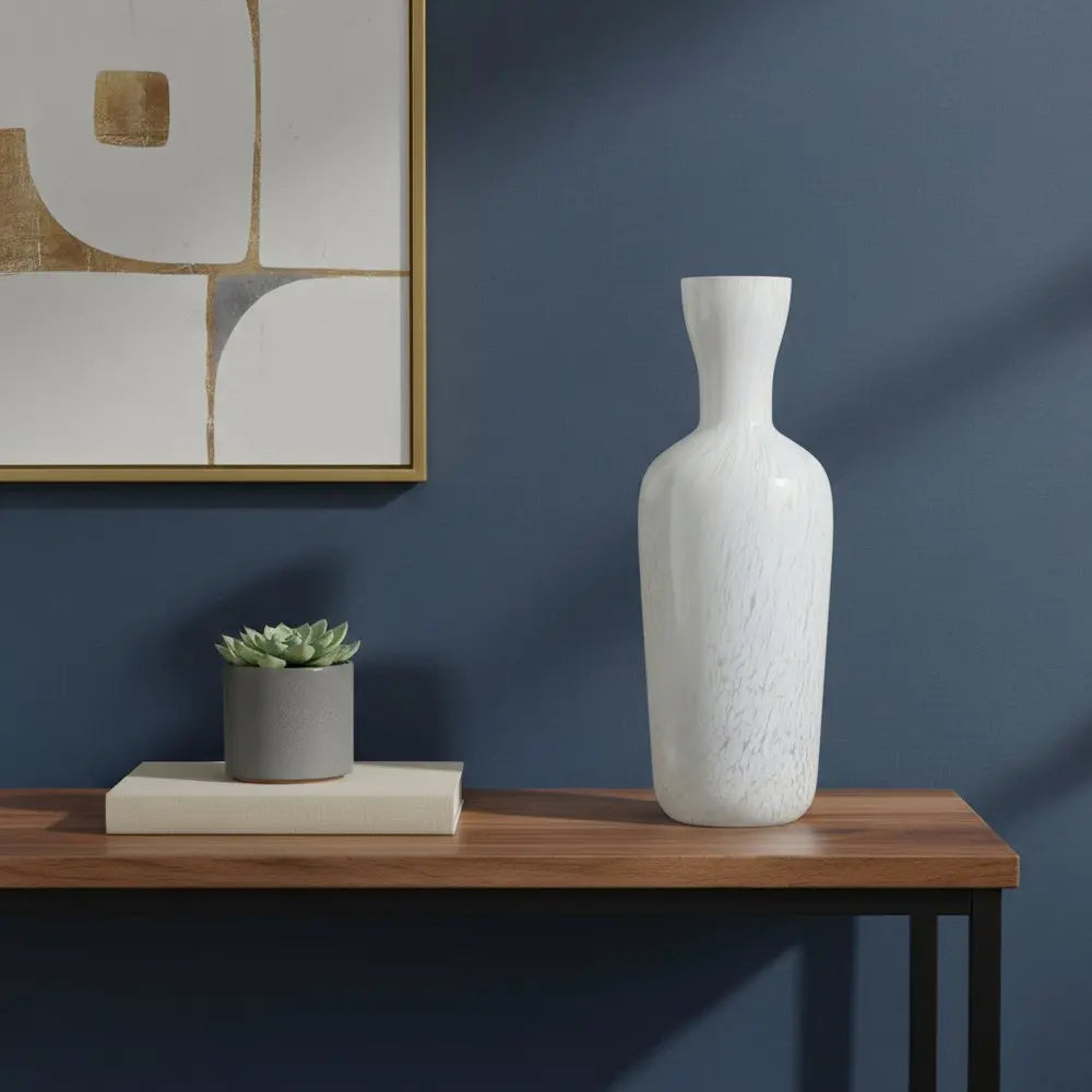 12" Opal Swirl Art Glass Cylinder Table Vase
