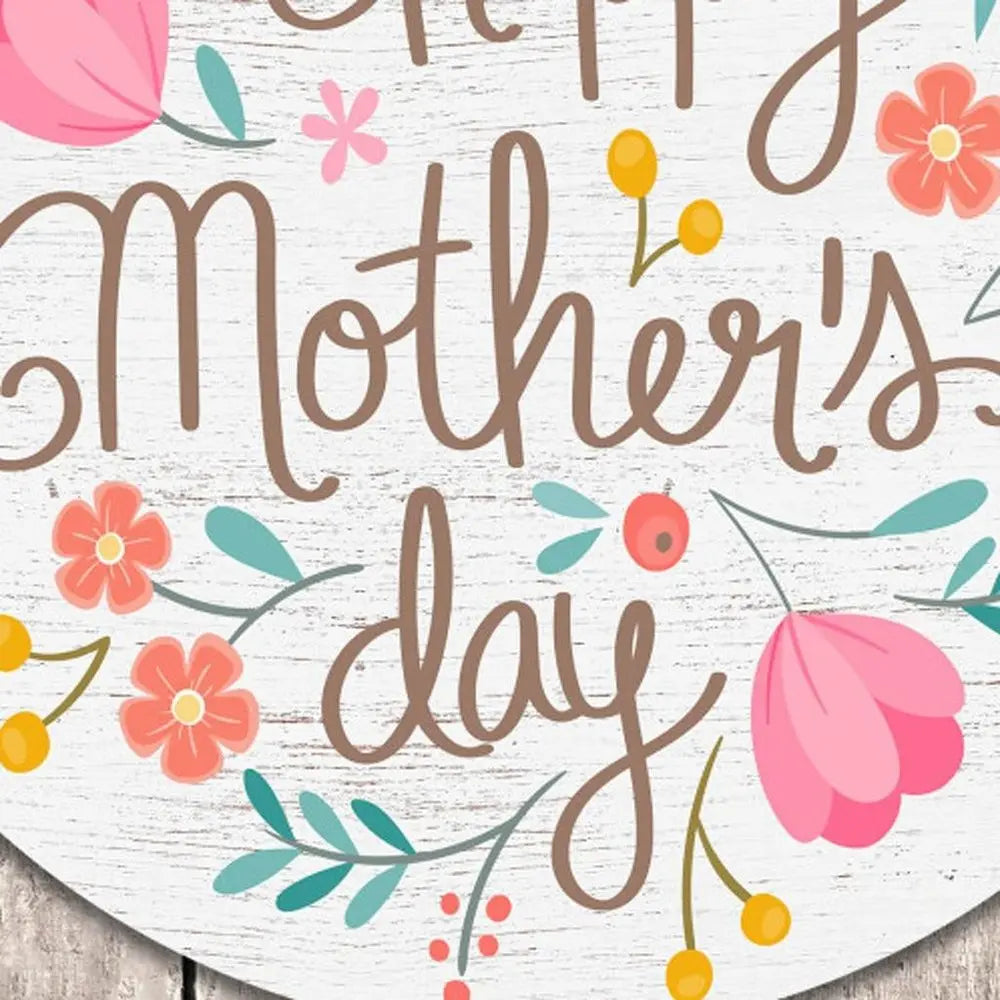 • 12" X 12" White Brown And Pink Floral Happy Mother's Day Wood Circle Wall Decor