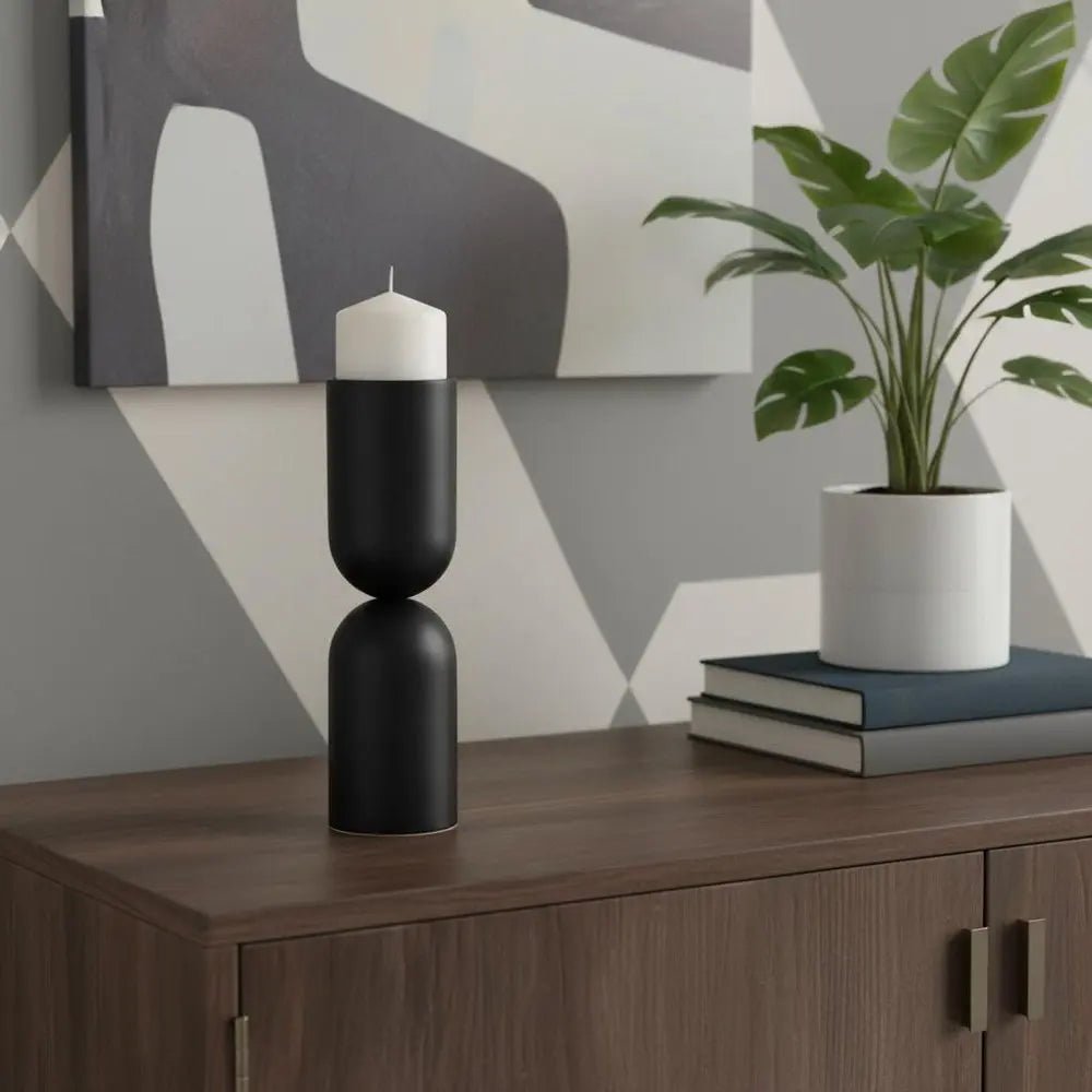 13" Black Metal Tabletop Pillar Candle Holder