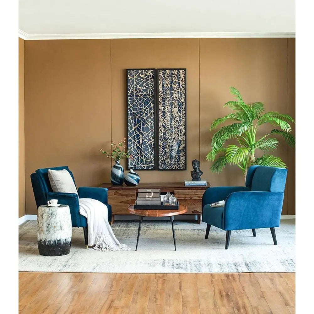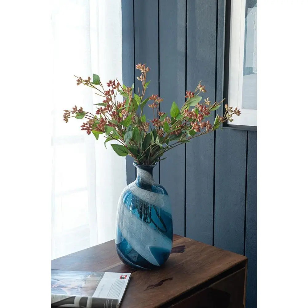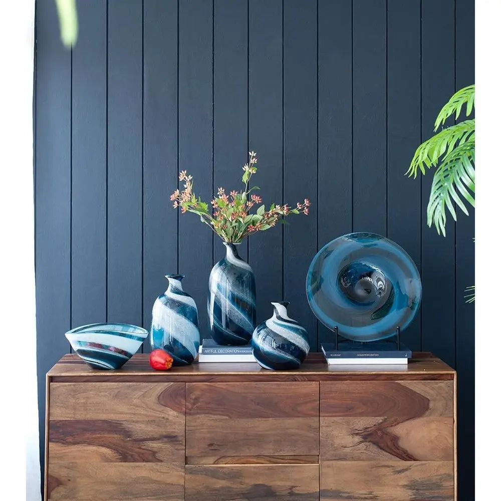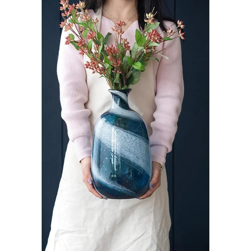 13" Blue And White Striped Swirl Art Glass Table Vase