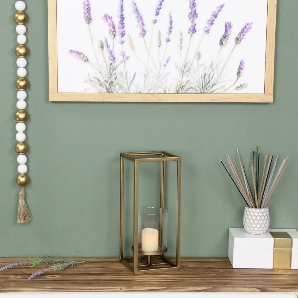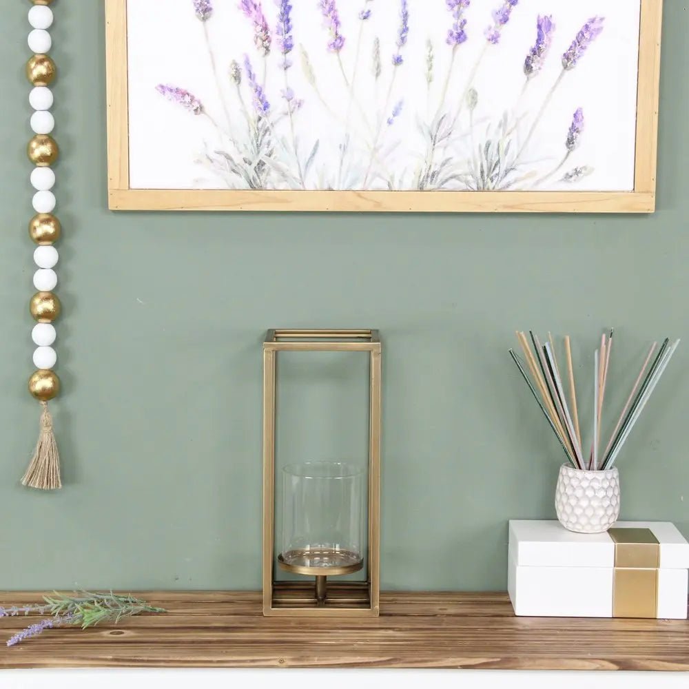 13" Gold And Clear Metal And Glass Tabletop Candle Holder