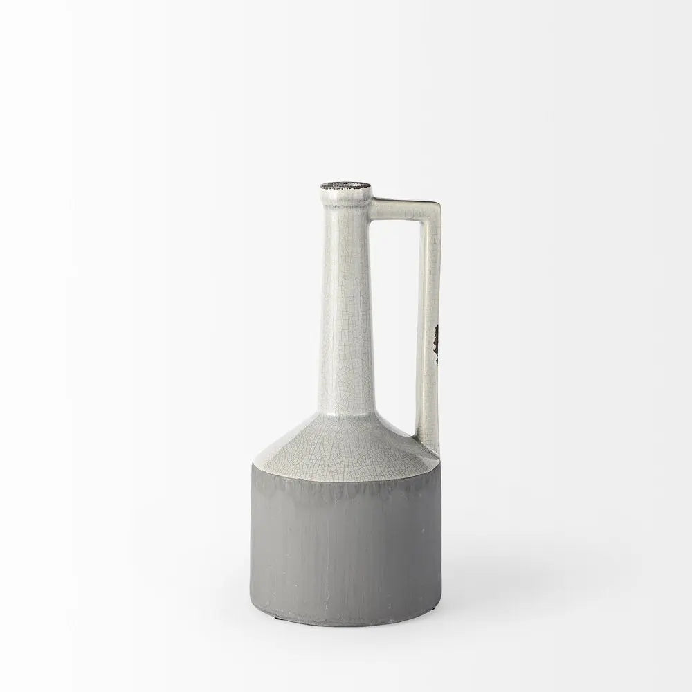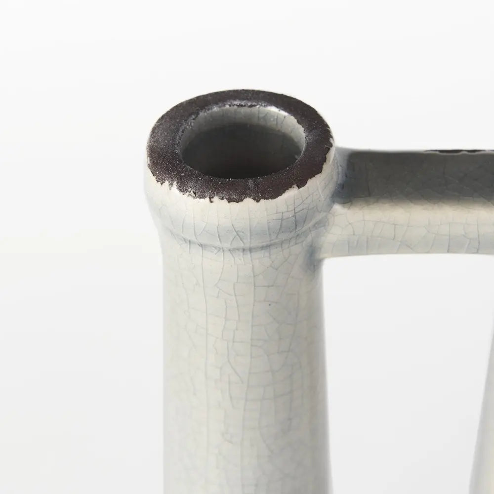 13" Gray And White Cylinder Ceramic Urns Jars