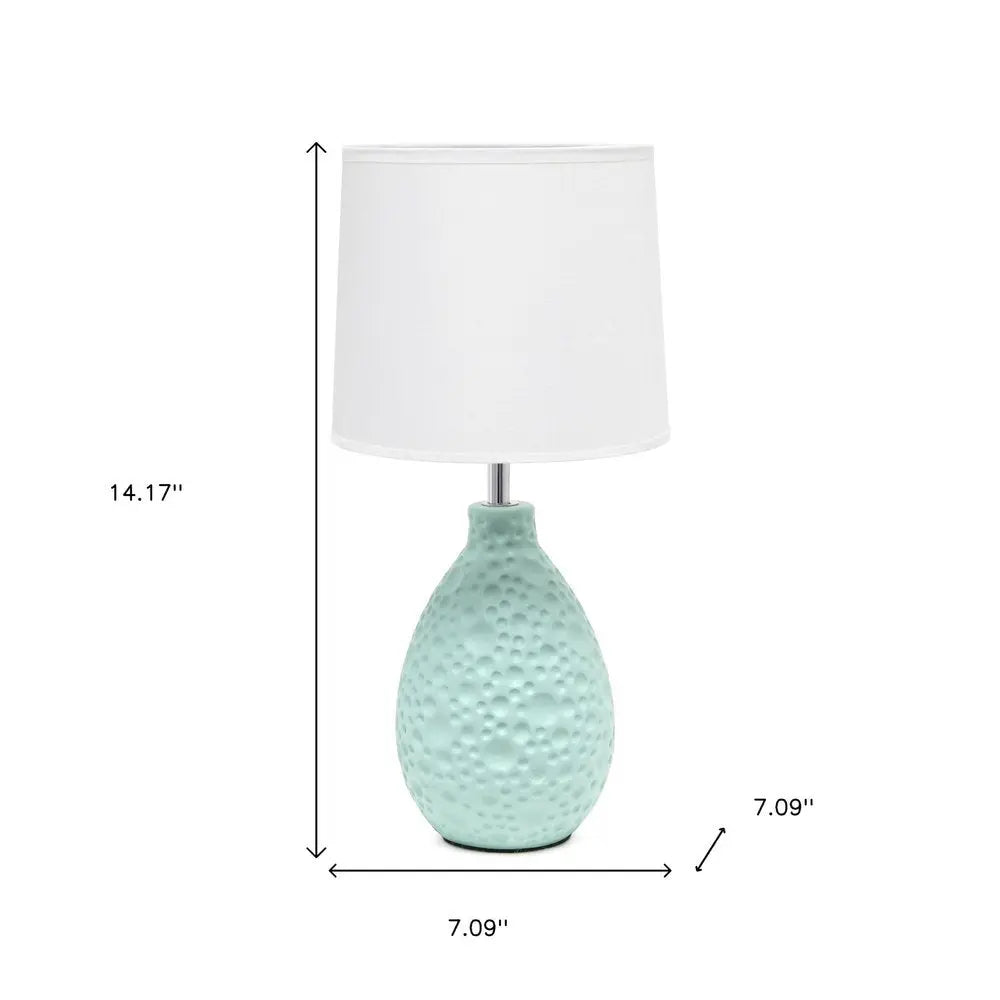 14" Blue Ceramic Round Table Lamp With White Drum Shade HomeRoots